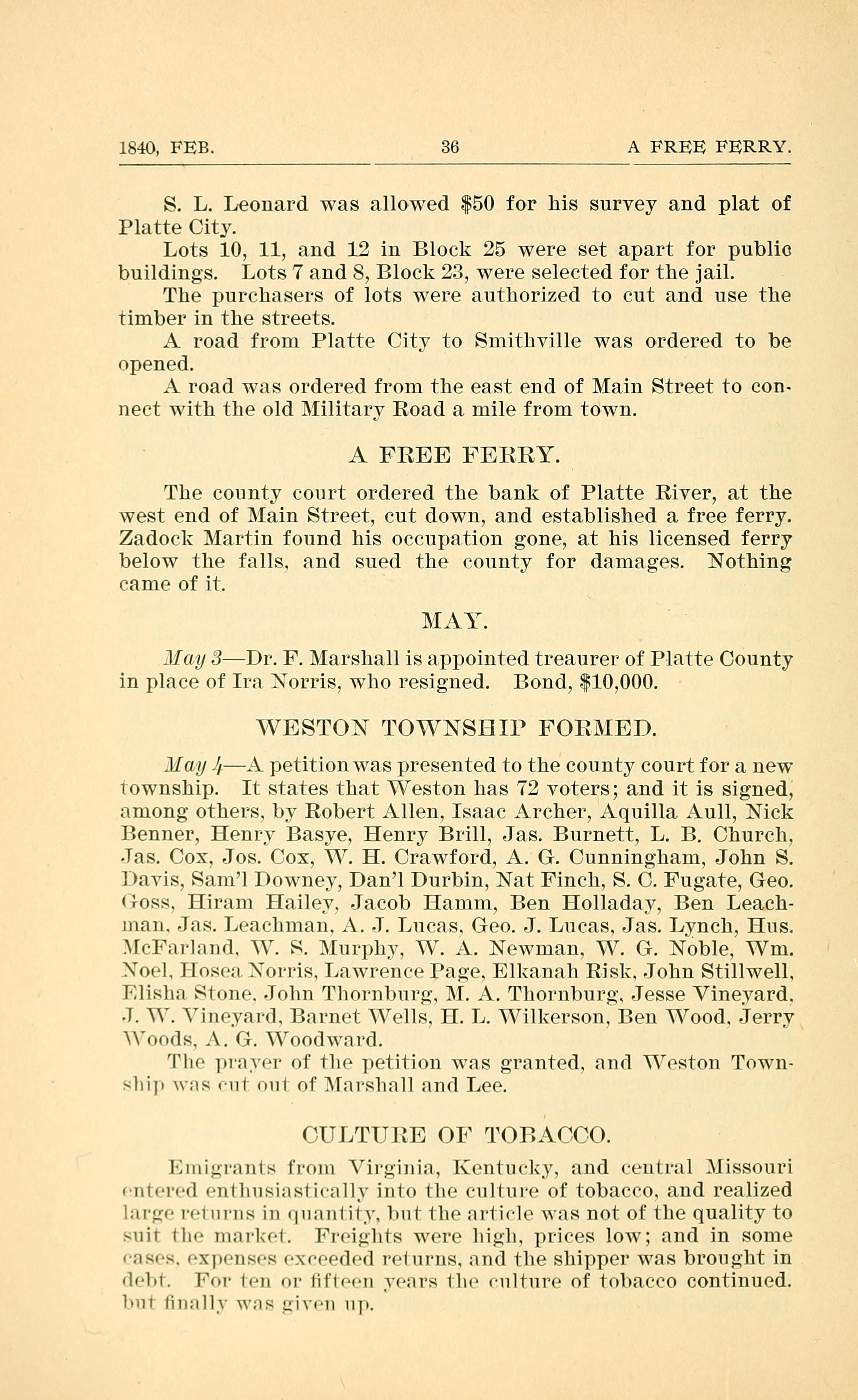 J] (13; 3Dr. F. Marshall is appointed treaurer of Platte County