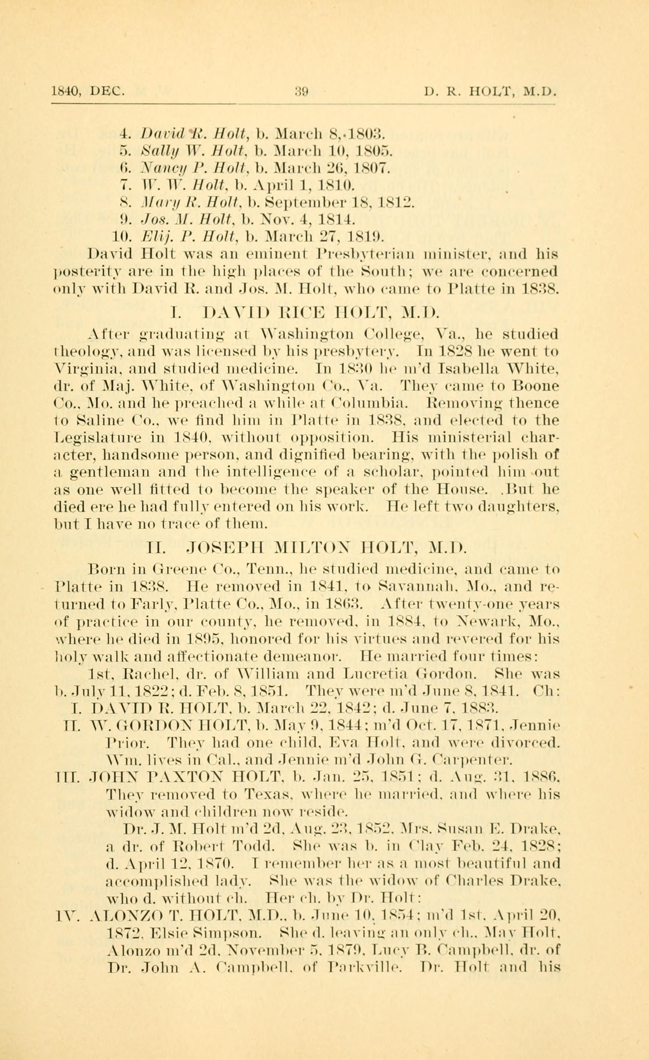 1840, DEC. 39 D. R. HOLT, M. D.