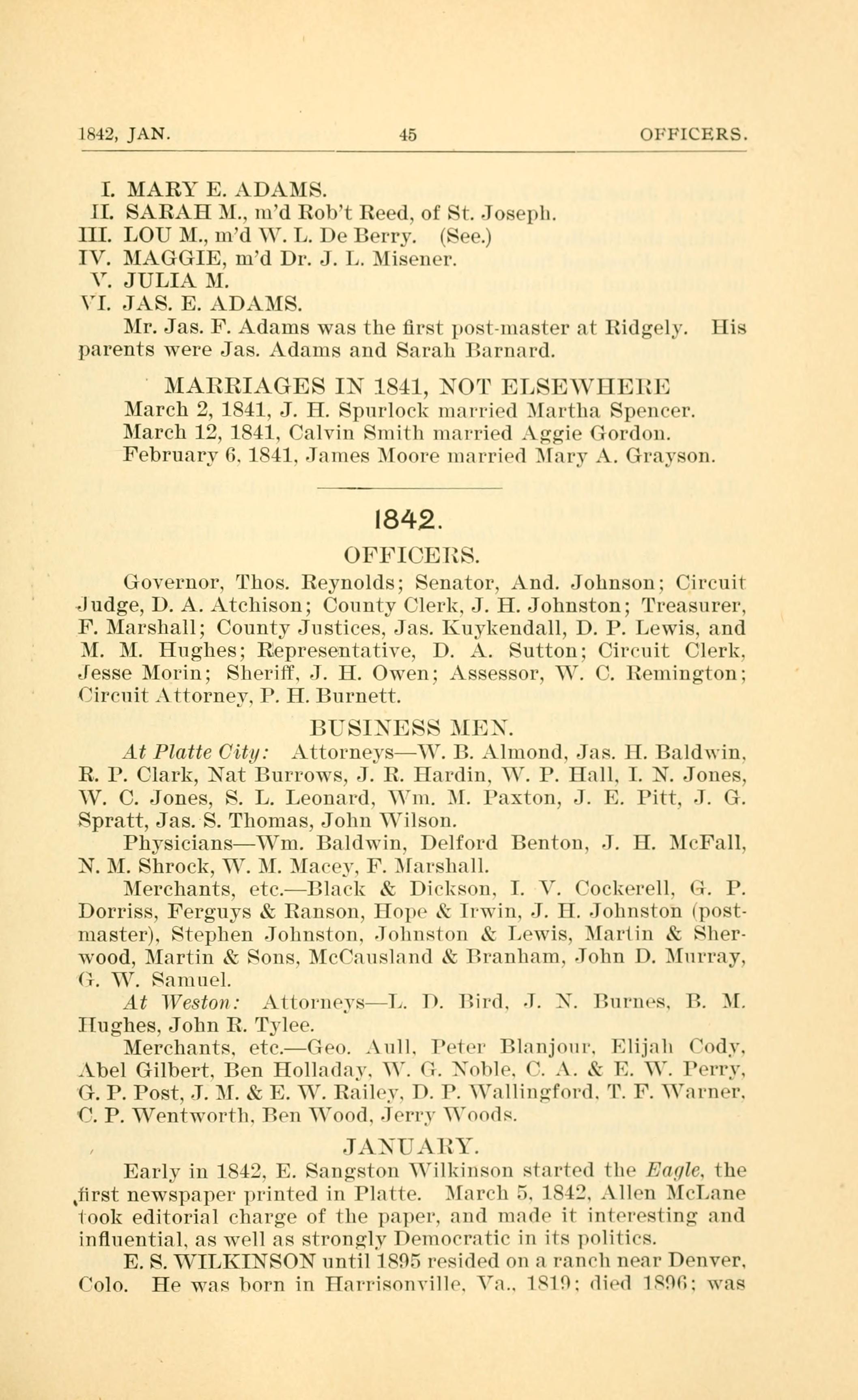 Early in 1842. E. Sangston Vilkinson started the Eagle. the
