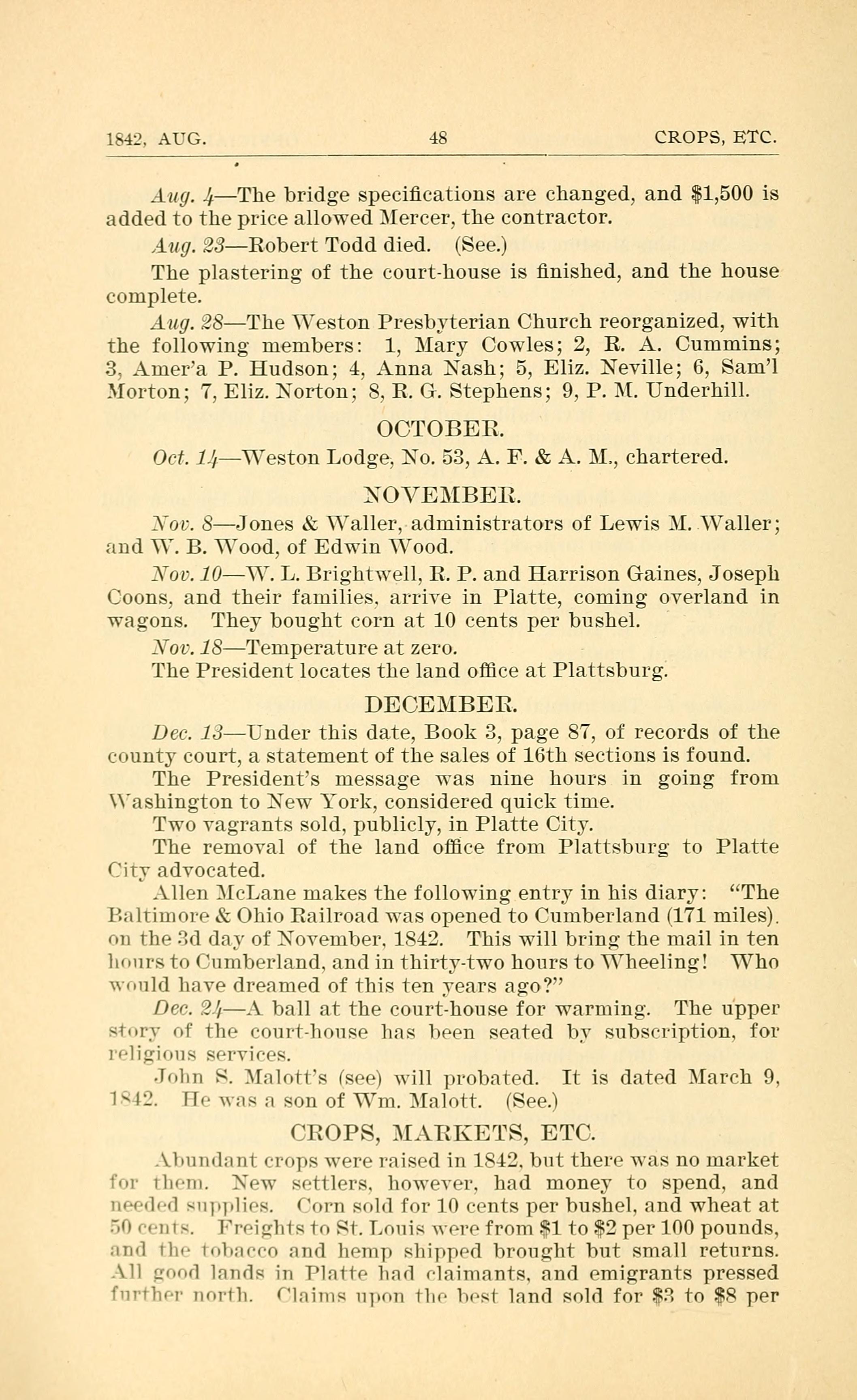 Baltimoi-e & Ohio Railroad was opened to Cumberland (171 miles).