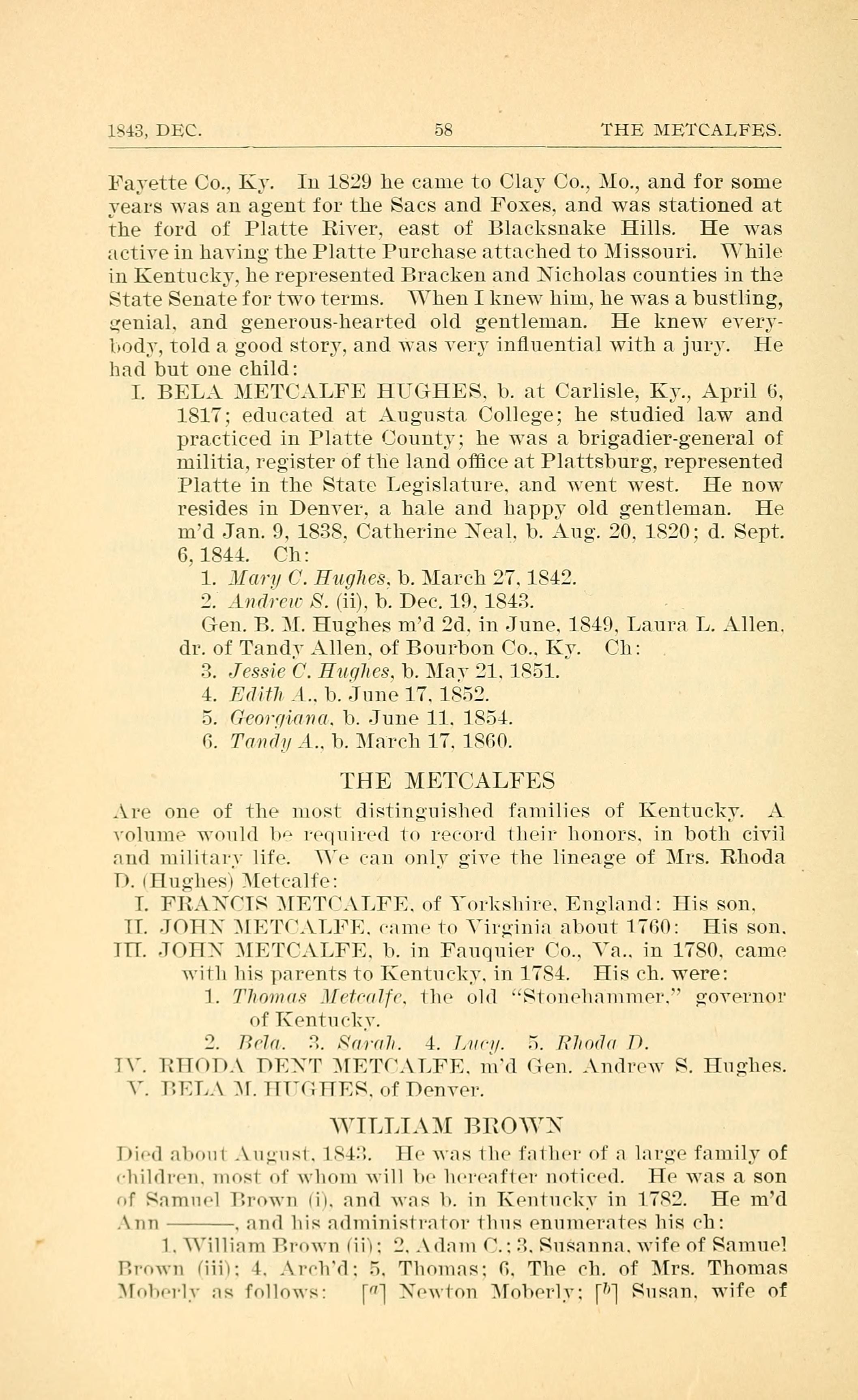I. BELA METCALFE HUGHES. b. at Carlisle, K31, April 6,