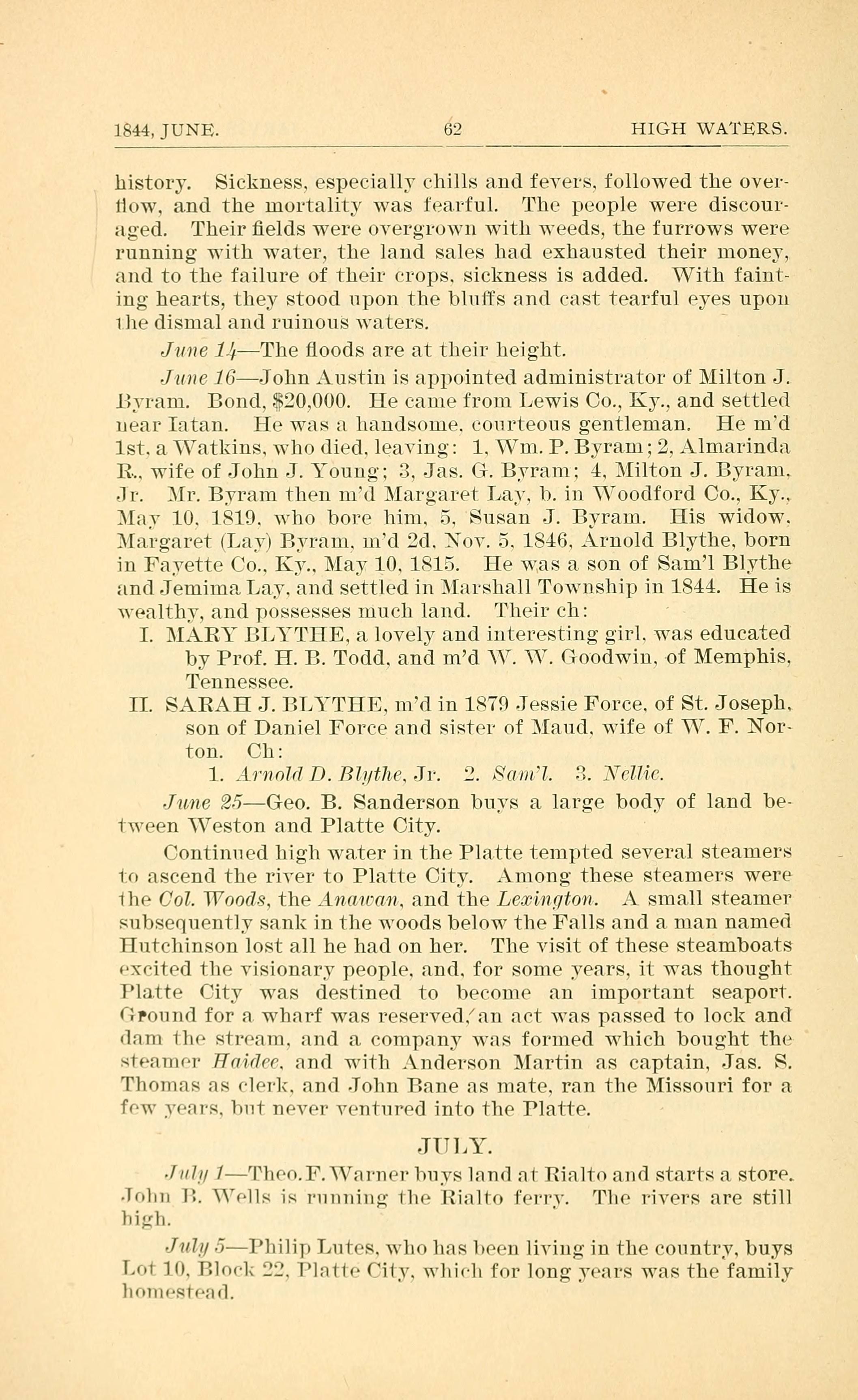 June 25 - George B. Sanderson buys a large body of land between Weston and Platte City.