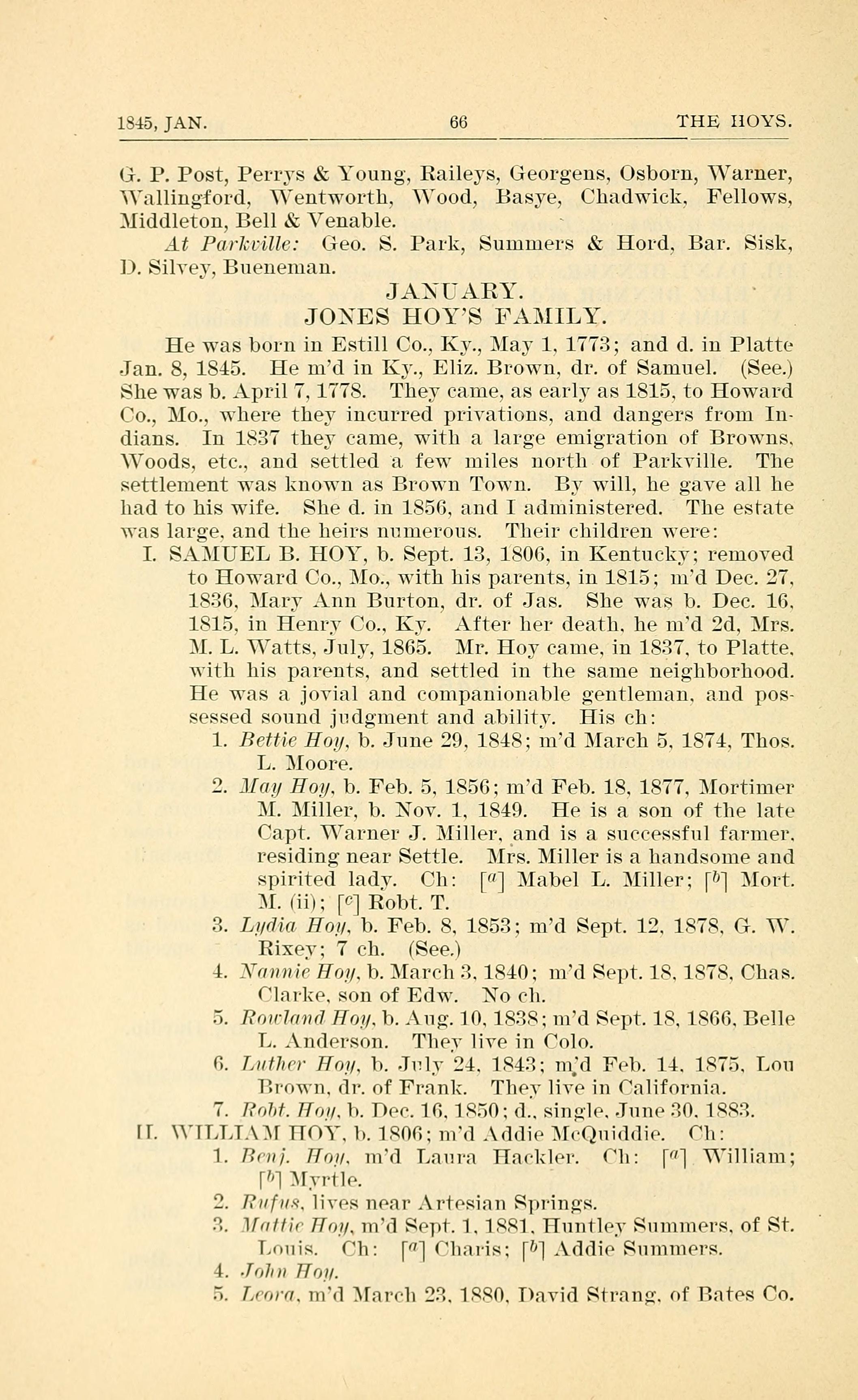 I. SAMUEL B. HOY, b. Sept. 13, 1806, in Kentucky: removed