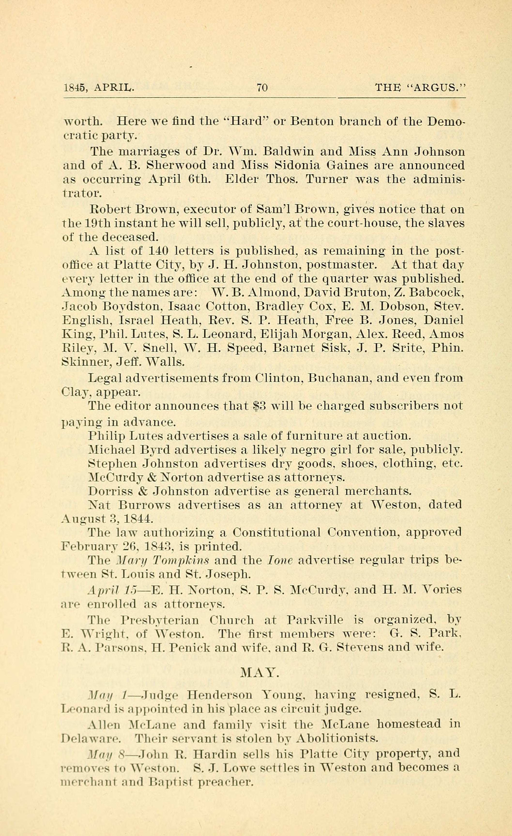 oice at Platte City, by J. H. Johnston, postmaster. At that day