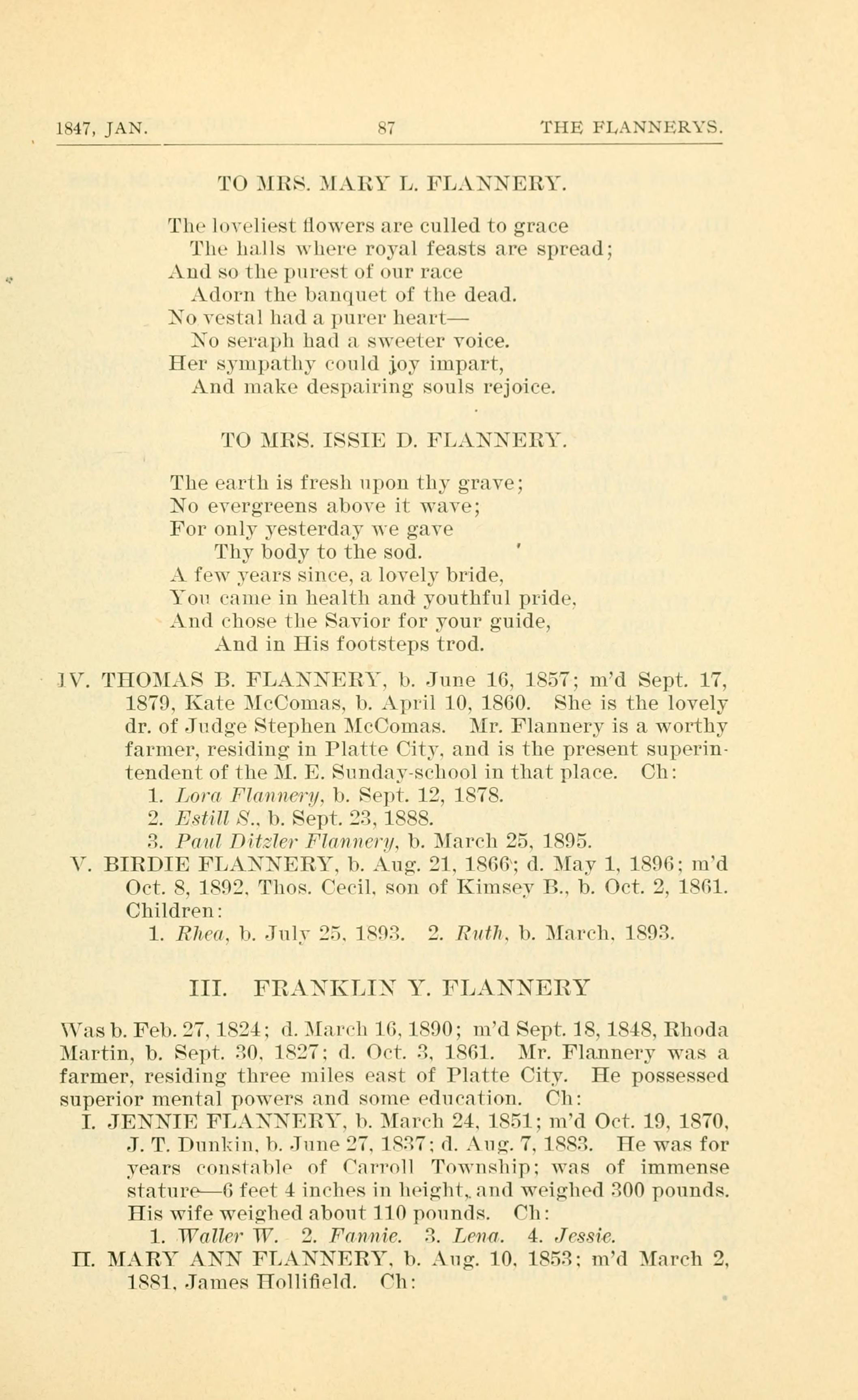 V. BIRDIE FLANNERY. b. Aug. 21, 1866; d. May 1. 1896; md