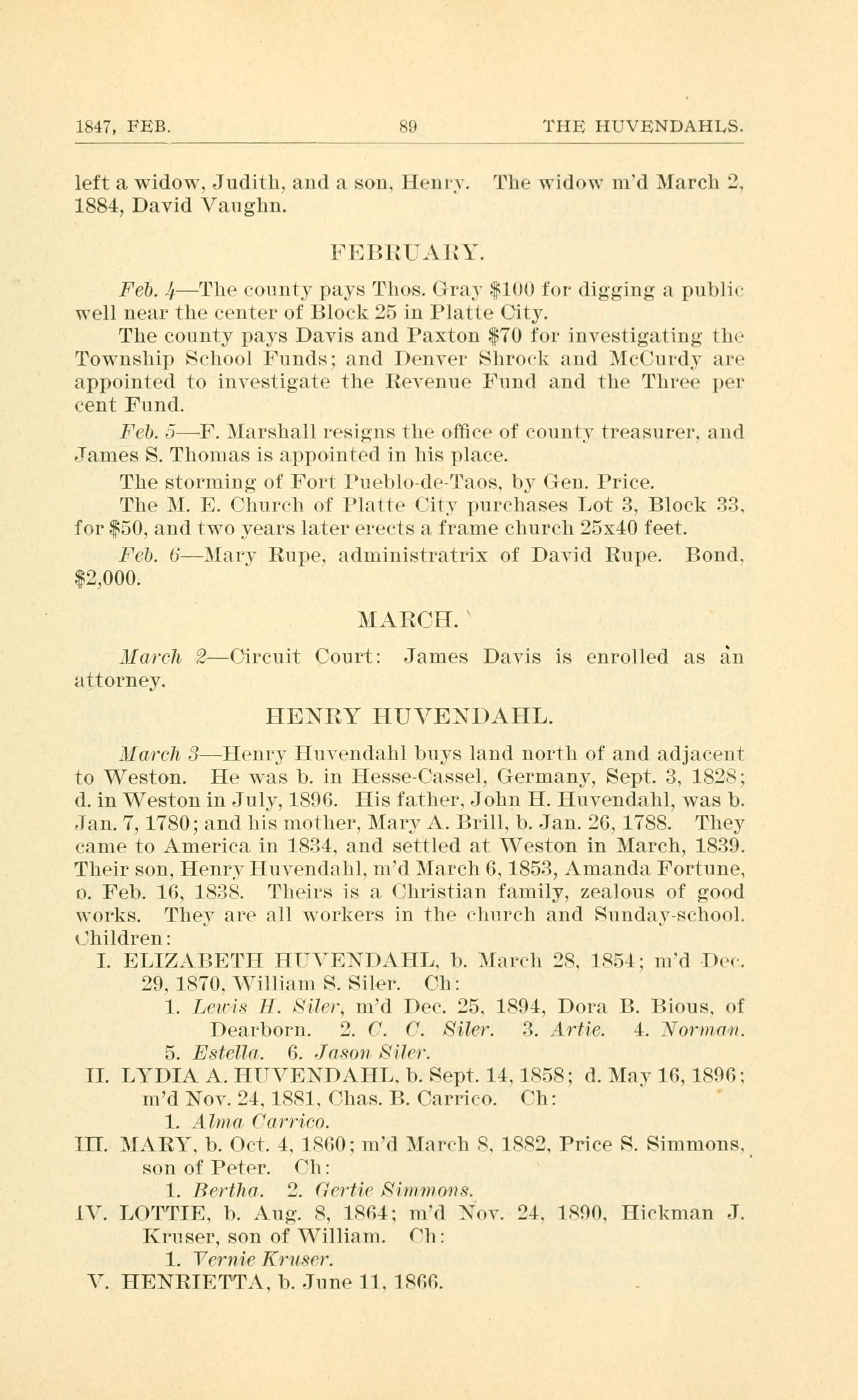 1847, FEB. 89 THE HUVENDAHLS.