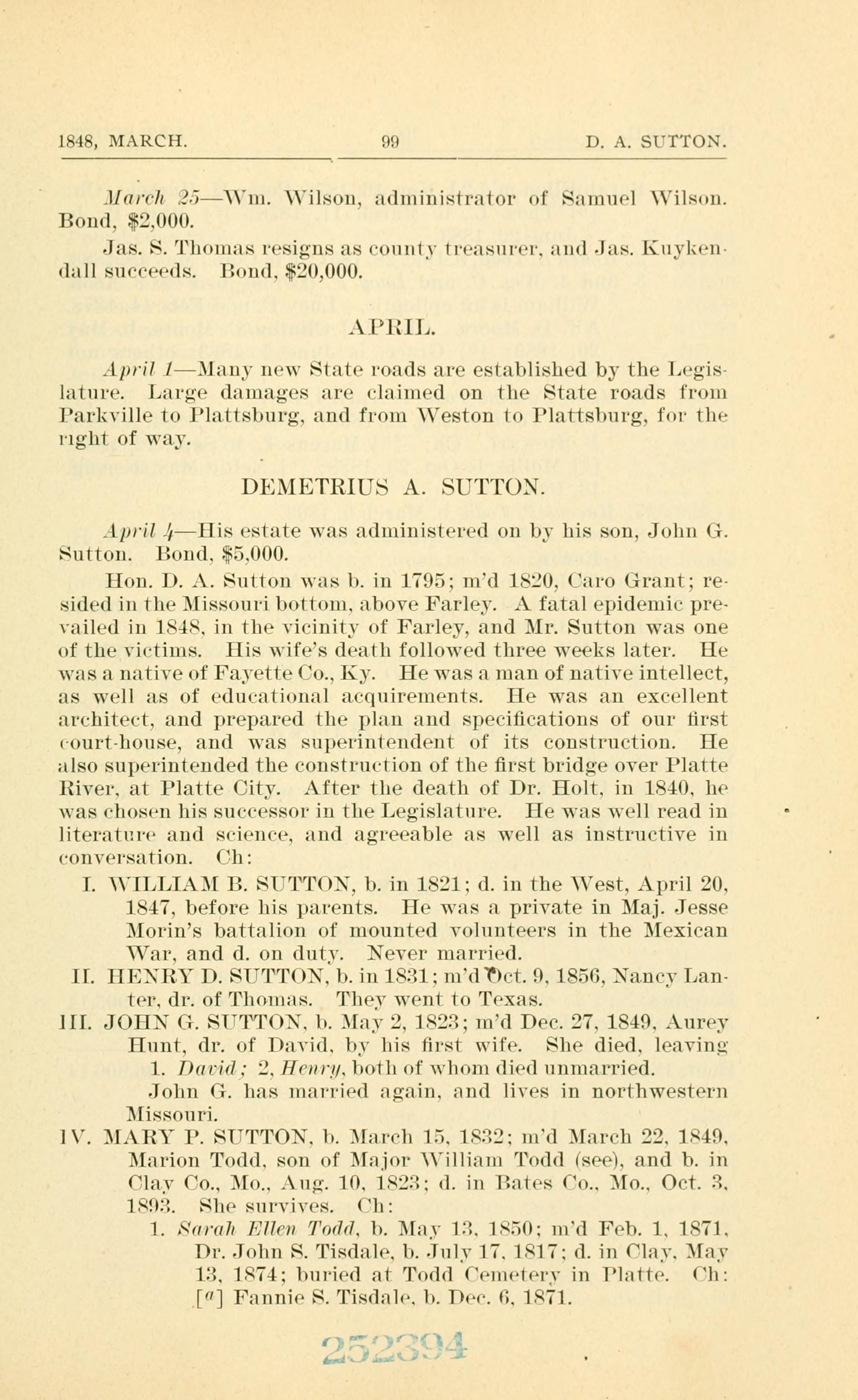 I. \ILLIAM B. SU1TOI, b. in 1821; (1. iii the Vest, April 20.