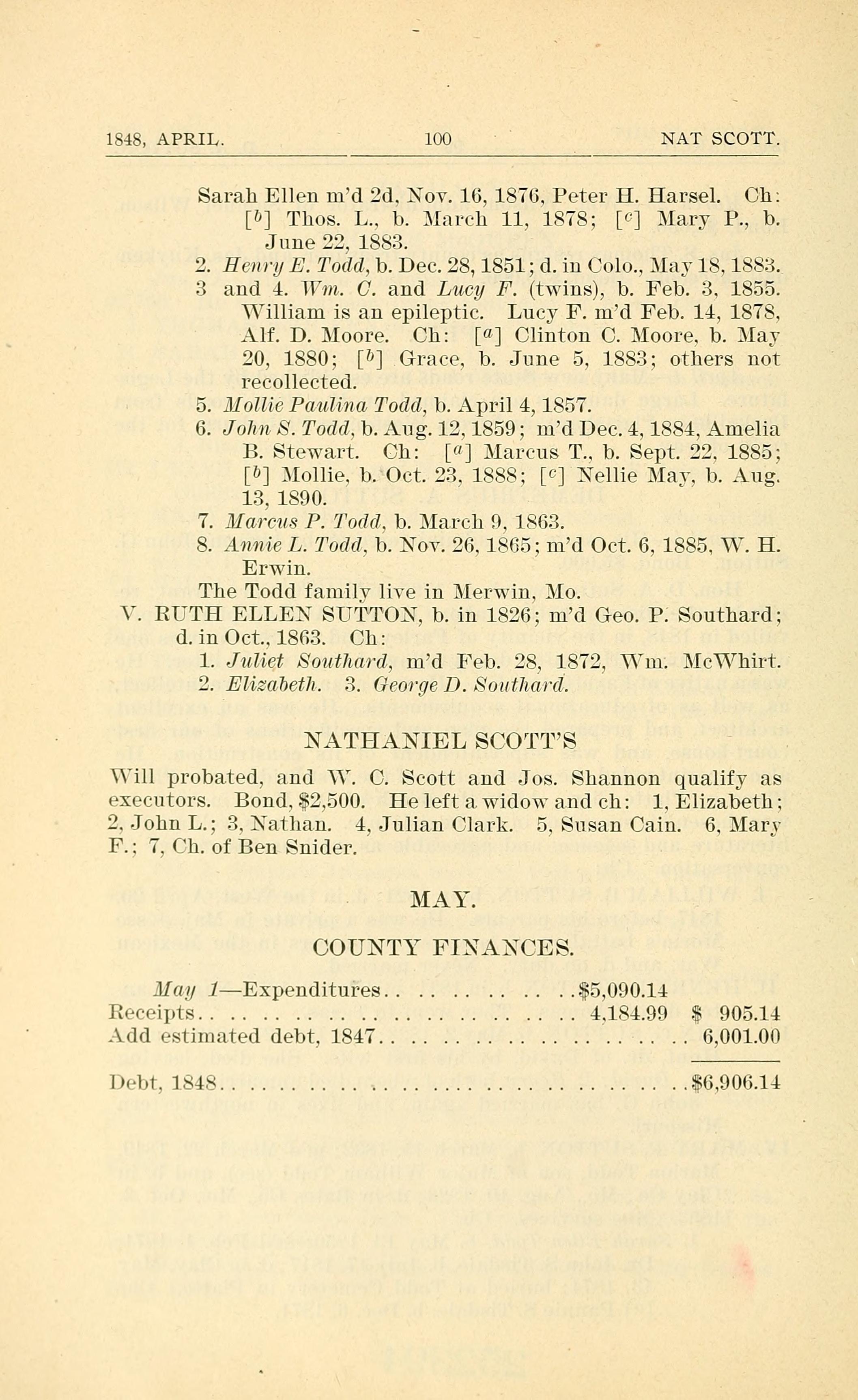 . Mollie Paulina Todd, b. April 4, 1857.