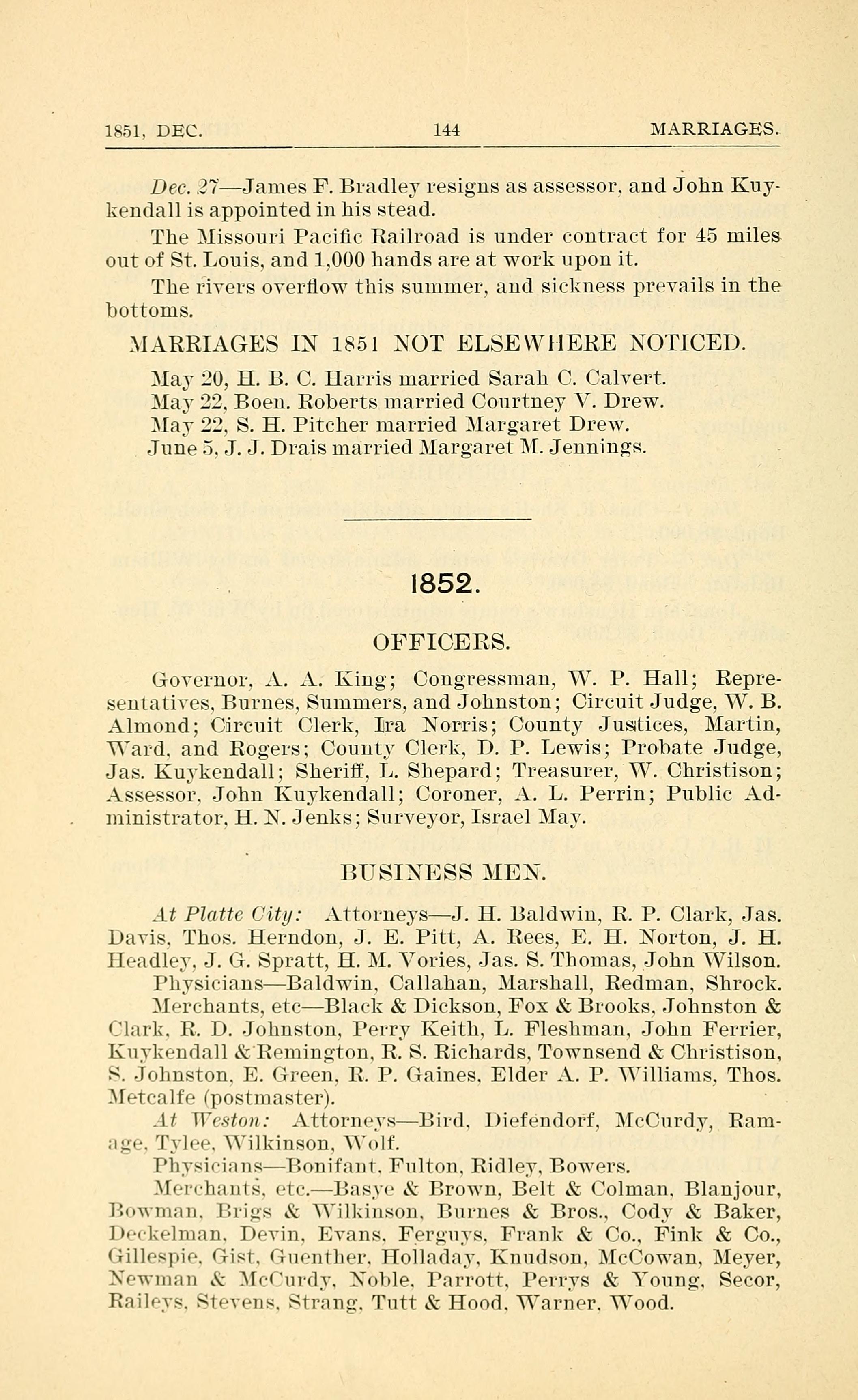Dec. 27 - James F. Bradley resigns as assessor. and John Kuykendall is appointed in his stead.