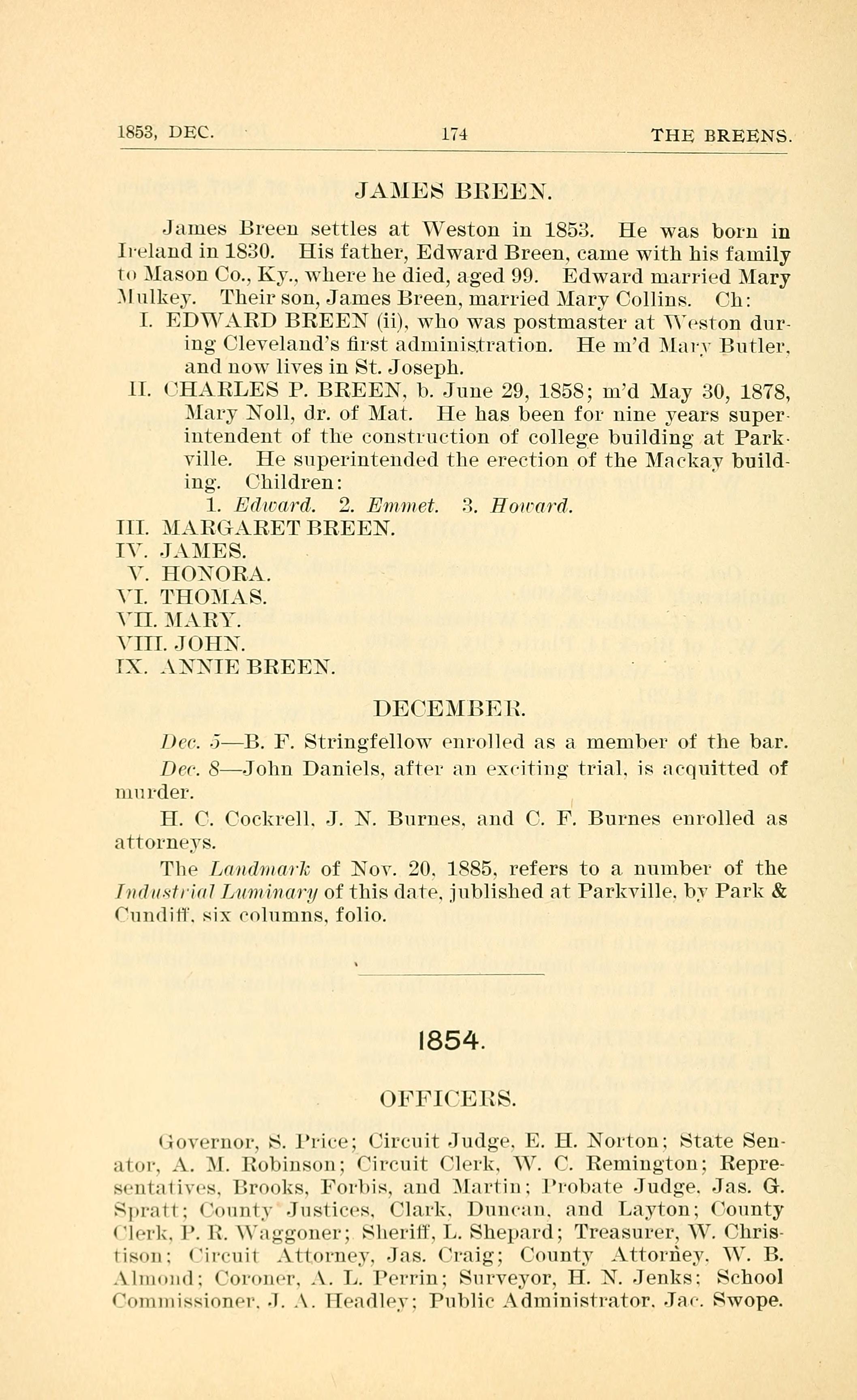 I. EDWARD BREEN (ii). who Was postmaster at VesT0n dur-