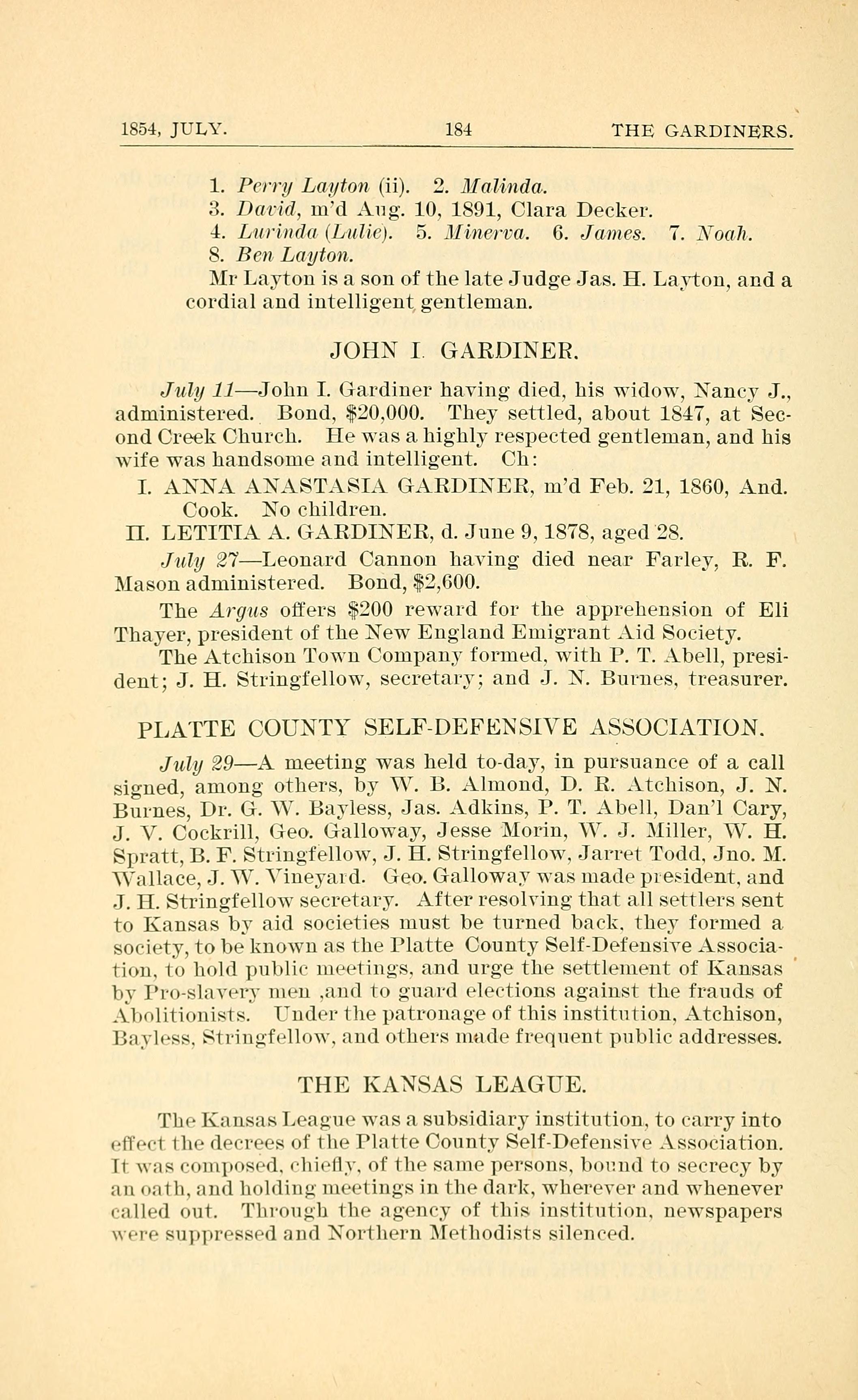 July 11John I. Gardiner having died, his widow, Nancy J.,