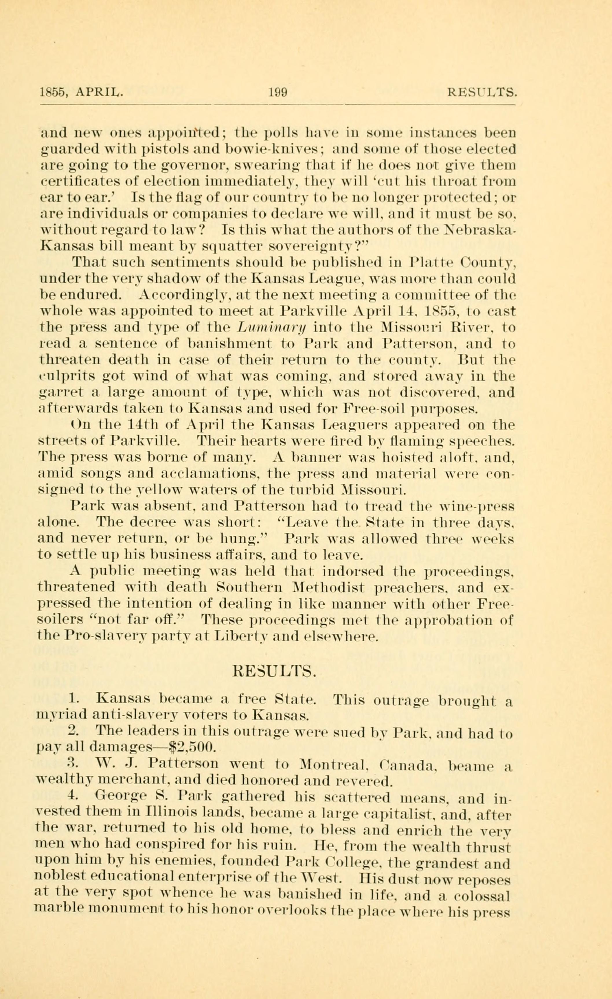 4. George S. Park gathered his scattered means. and invested them in Illinois lands, became a large capitalist. and. after the war. returned to his old home, to bless and enrieh the verv