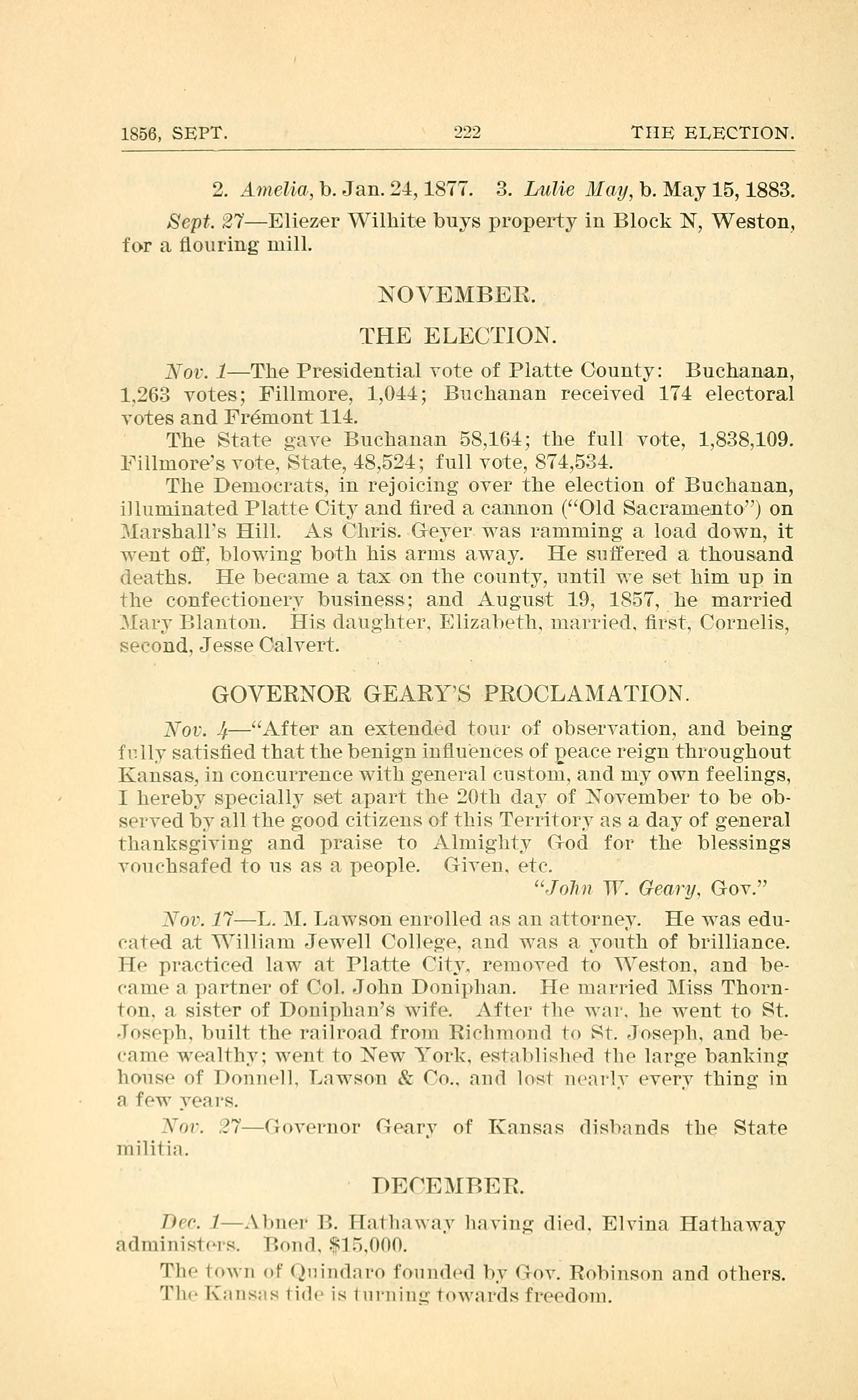1,263 votes; Fillmore, 1,044; Buchanan received 174 electoral