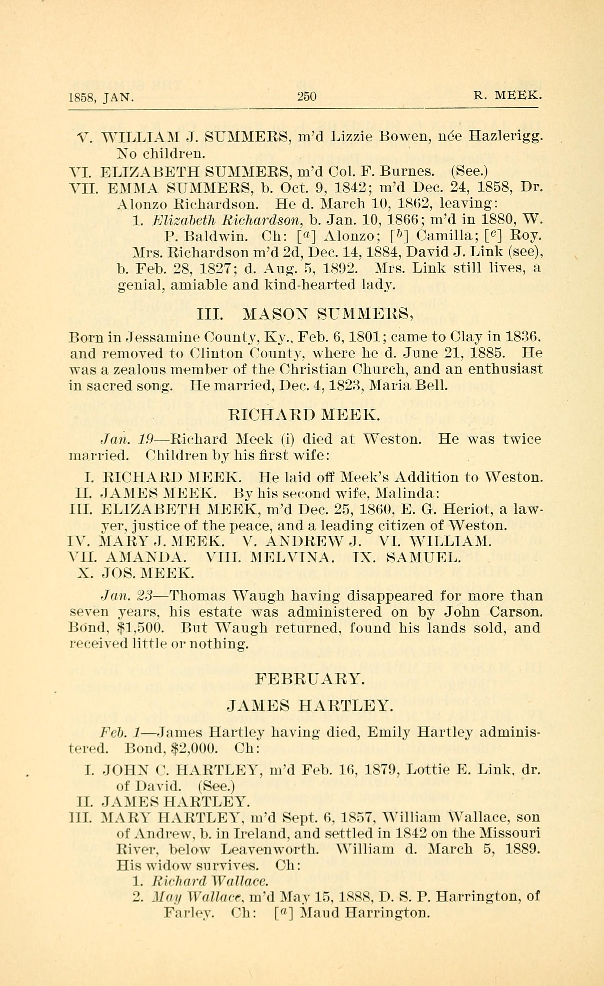 Jan. ]9RlCll21Id Meek (i) died at Weston. He was twice