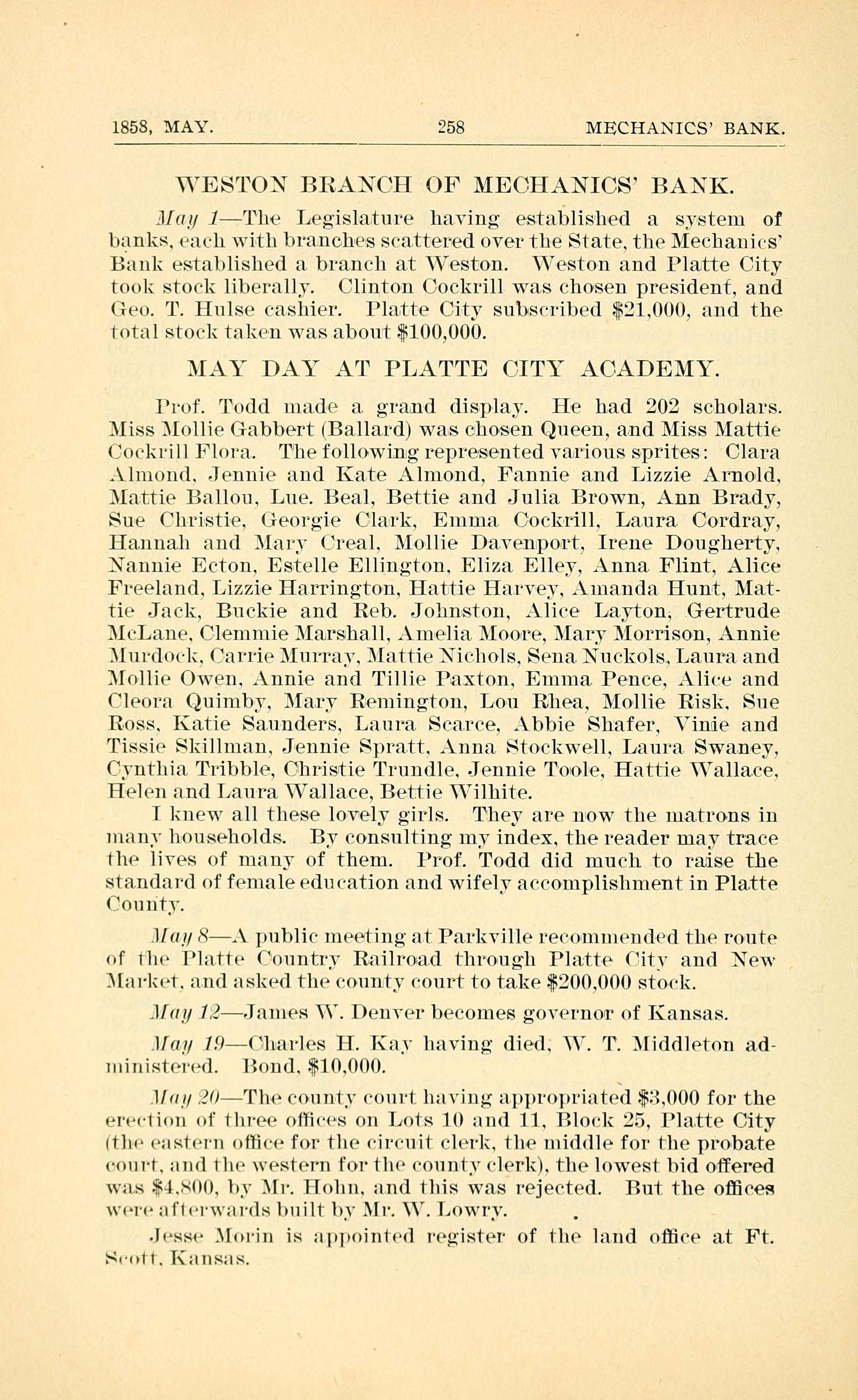 Bank established a branch at Vesto~n. Ve-ston and Platte City