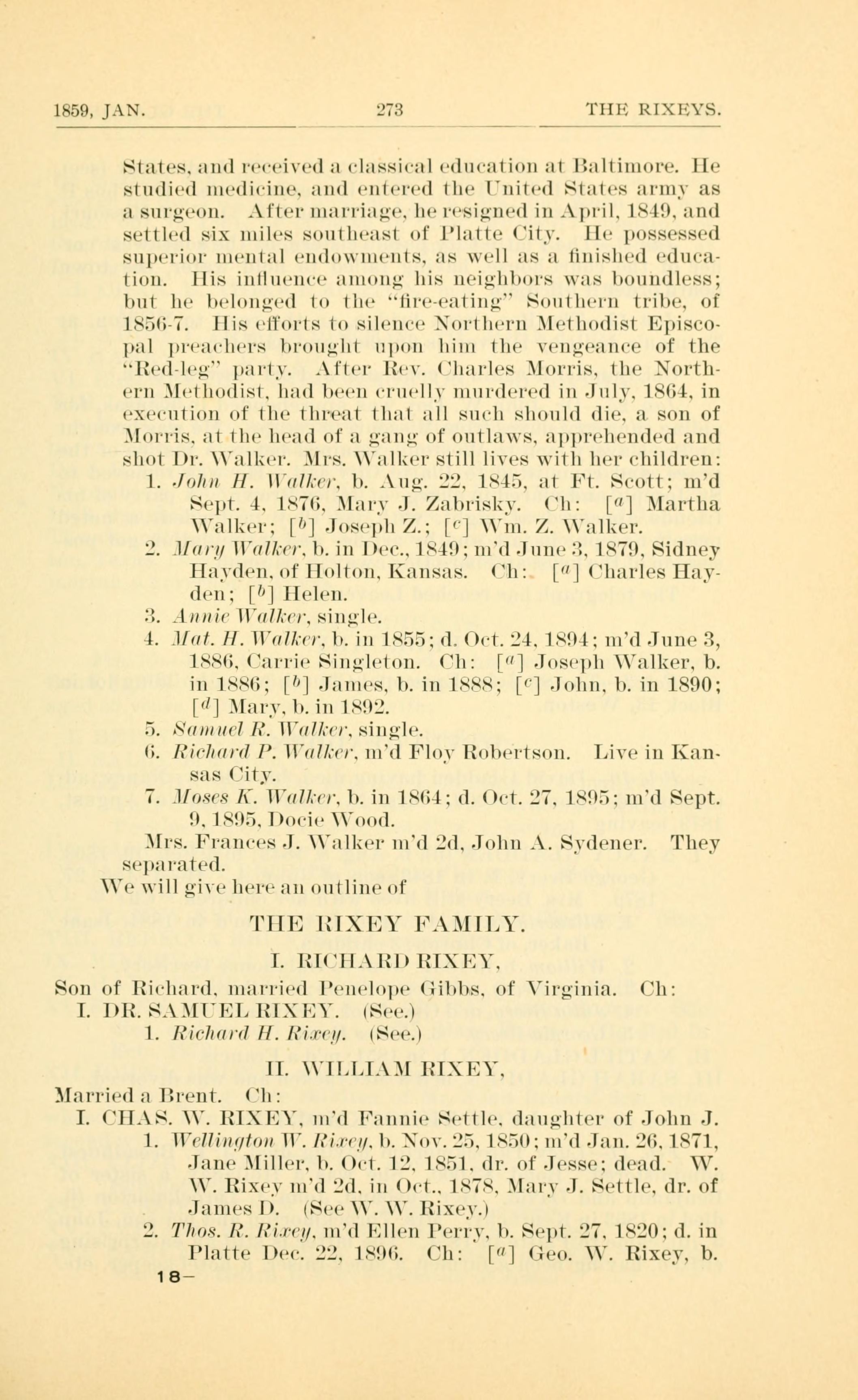 I. CHAS. W. RIXEY, married Fannie Settle, daughter of John J. Settle