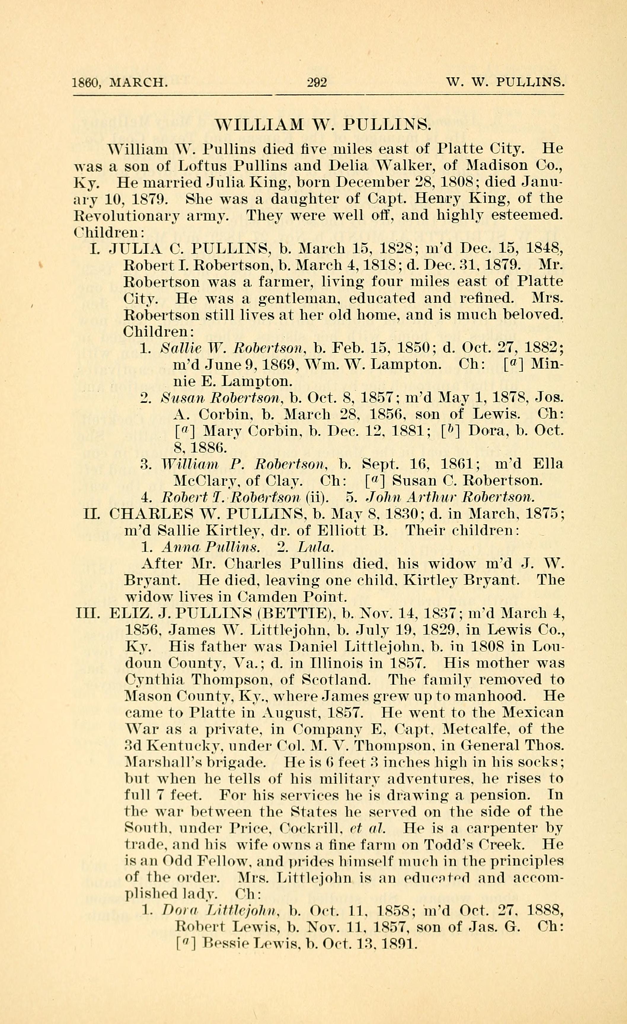 III. ELIZ. J. PULLINS (BETTIE), b. Nov. 14. 1837; n1d March 4,