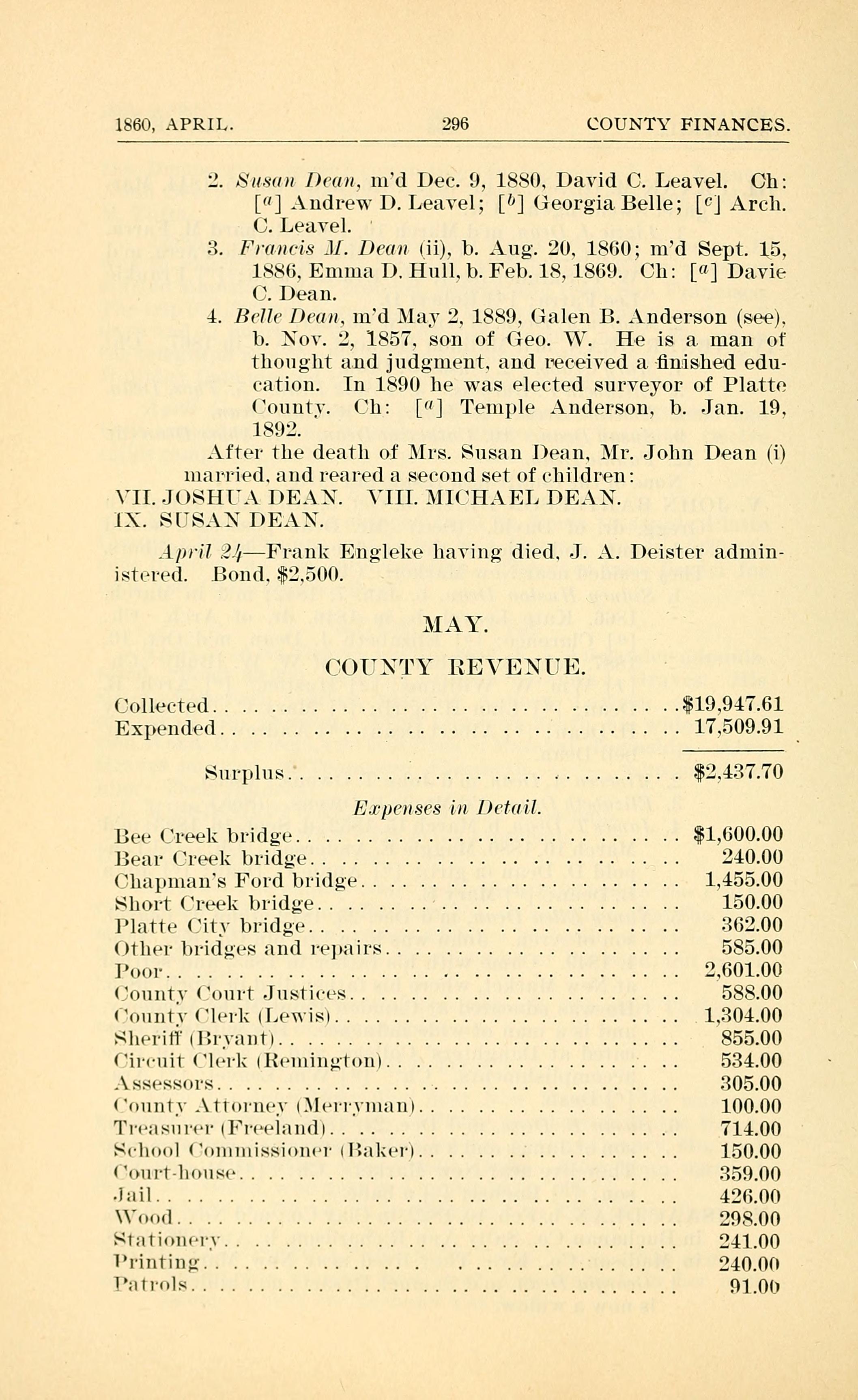 4. Belle I)ean. 1nd May 2, 1889, Galen B. Anderson (see),