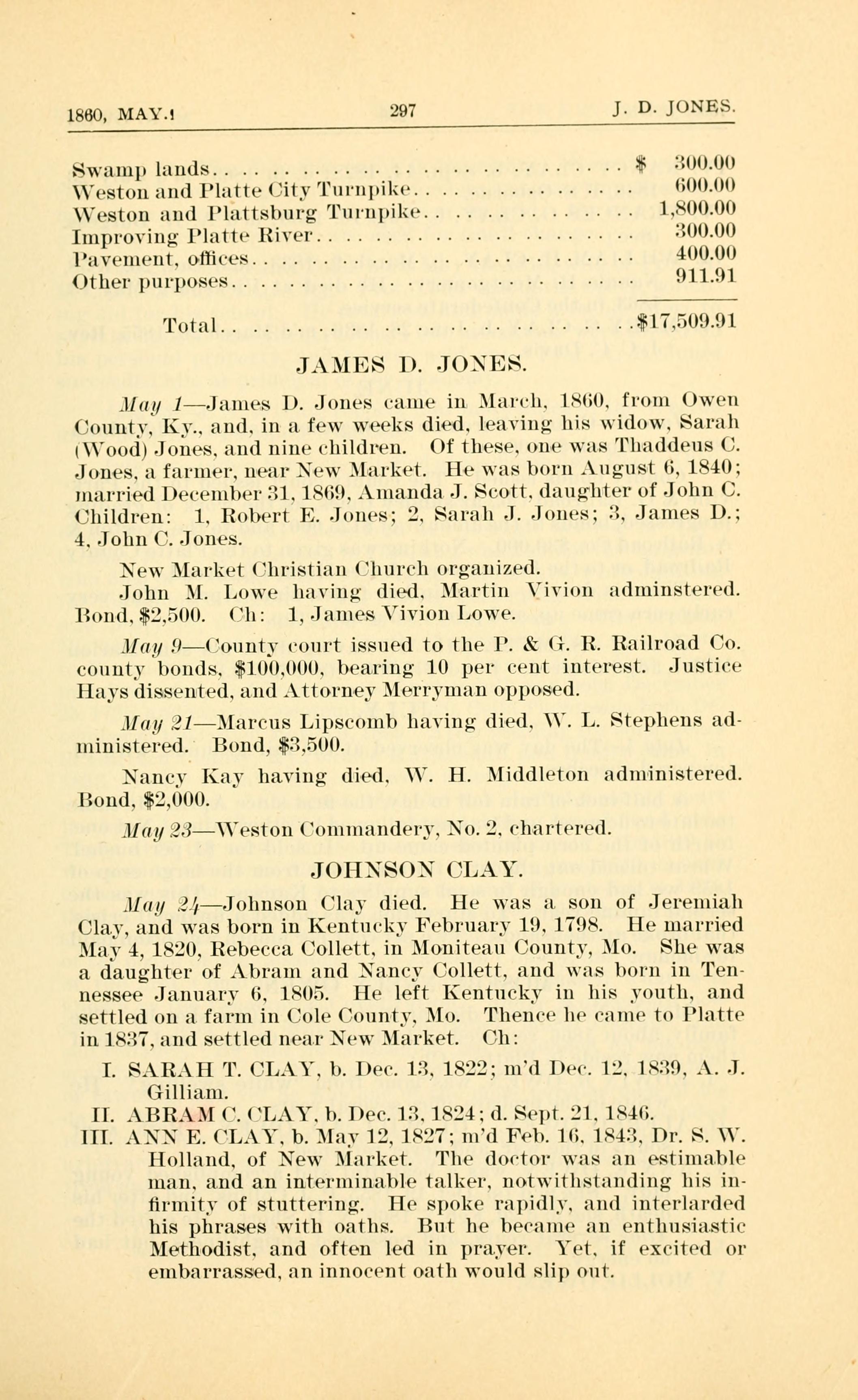 May 1 James 1). Jones came in .lareh. 18131), from Owen