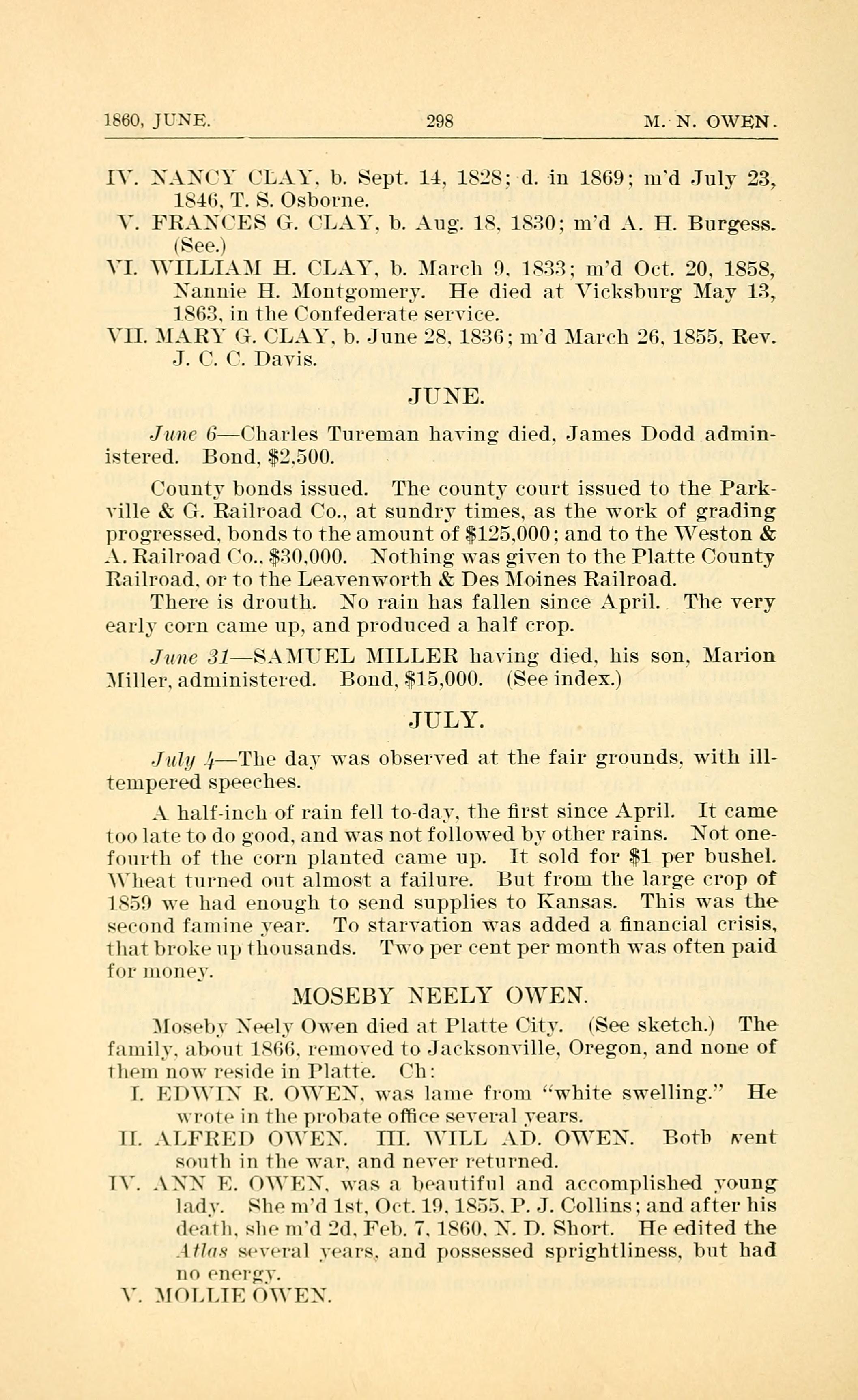 IV. ..~.(Y CLAY. b. Sept. 14, 1828; d. -in 1869; n1d July 23,