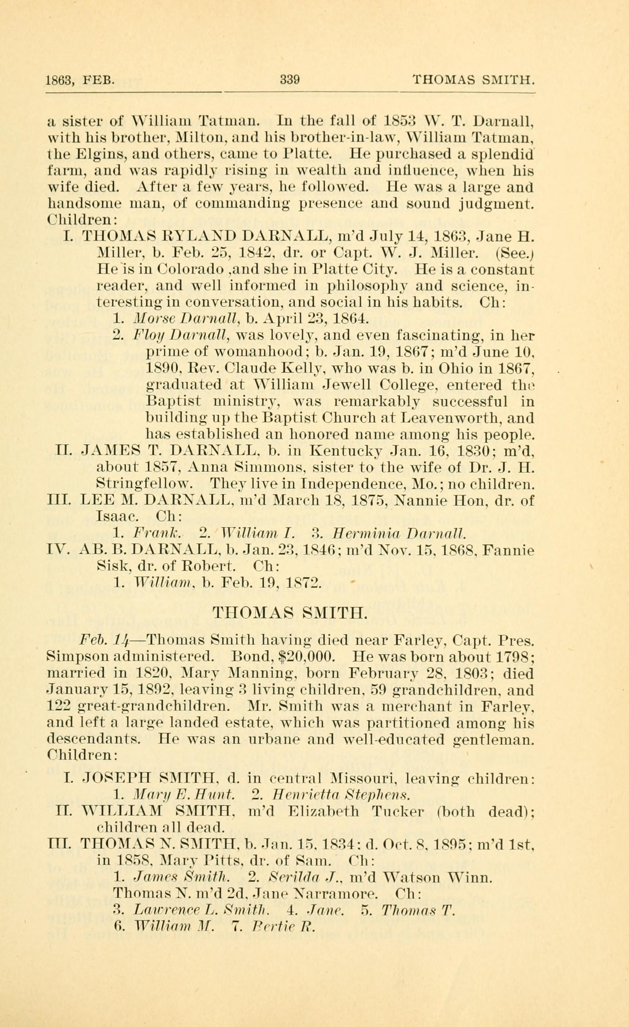 Feb. 11hon1as Smith i1VlIl, died near Farley. Capt. Pres.