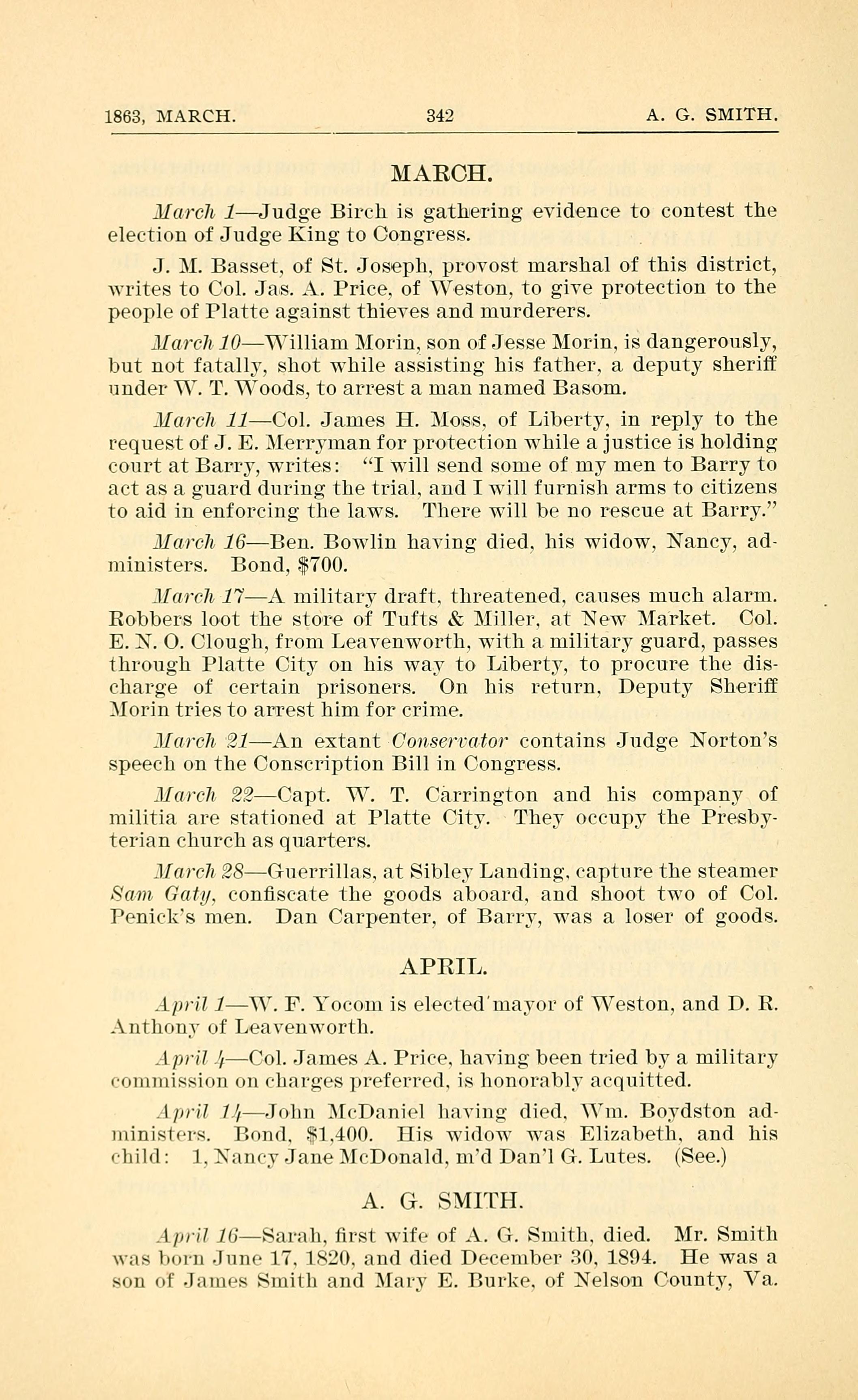 .-lpril 1(i-Sa1-ali. rst Wife of A. G. Smith. died. Mr. Smith