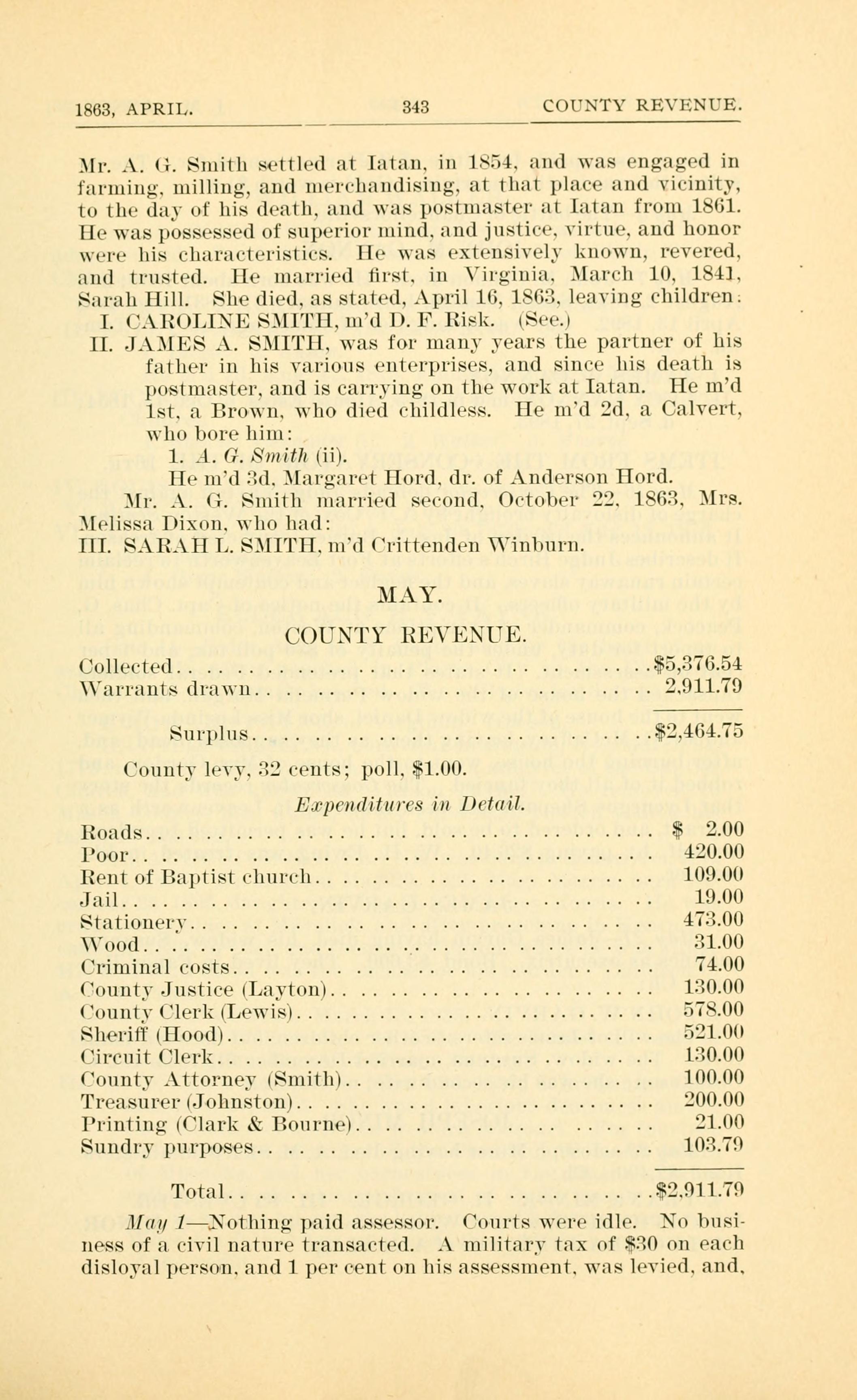 Mr. A. H. Smith settled at Iatan. in 1854. and was engaged in