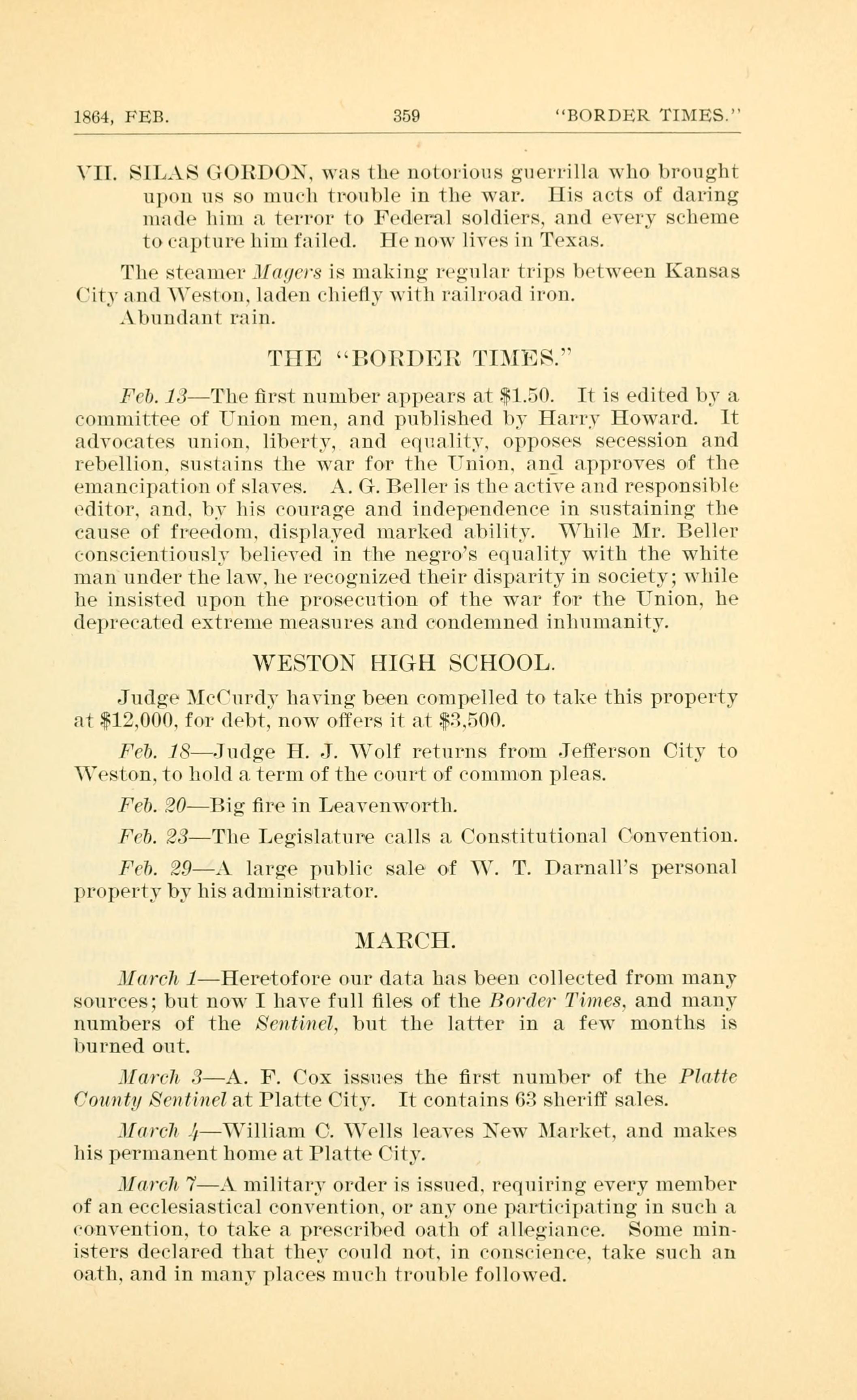 County Sentinel at Platte City. It contains 63 sheriff sales.