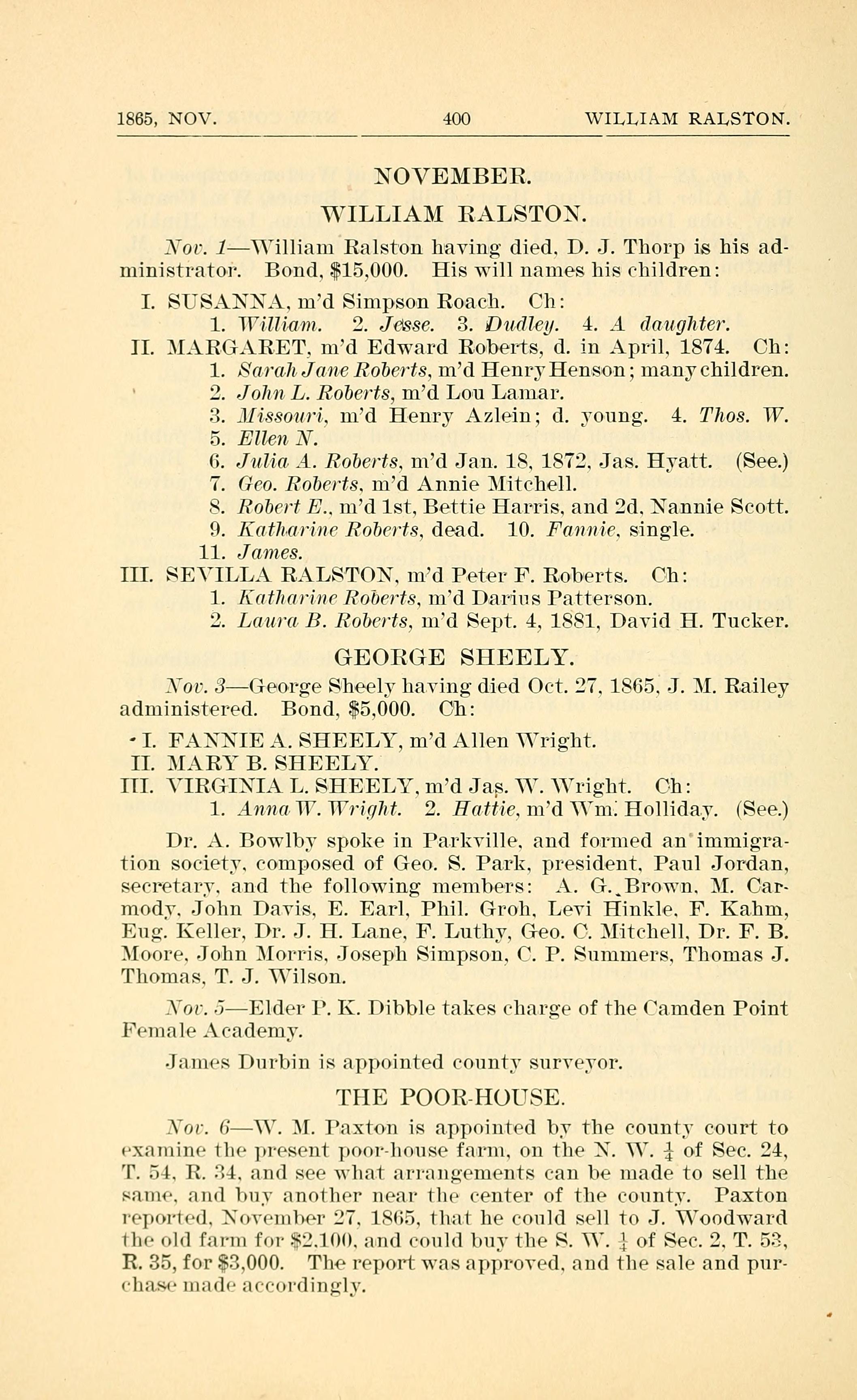 1865, NOV. 400 WILLIAM RALSTON.