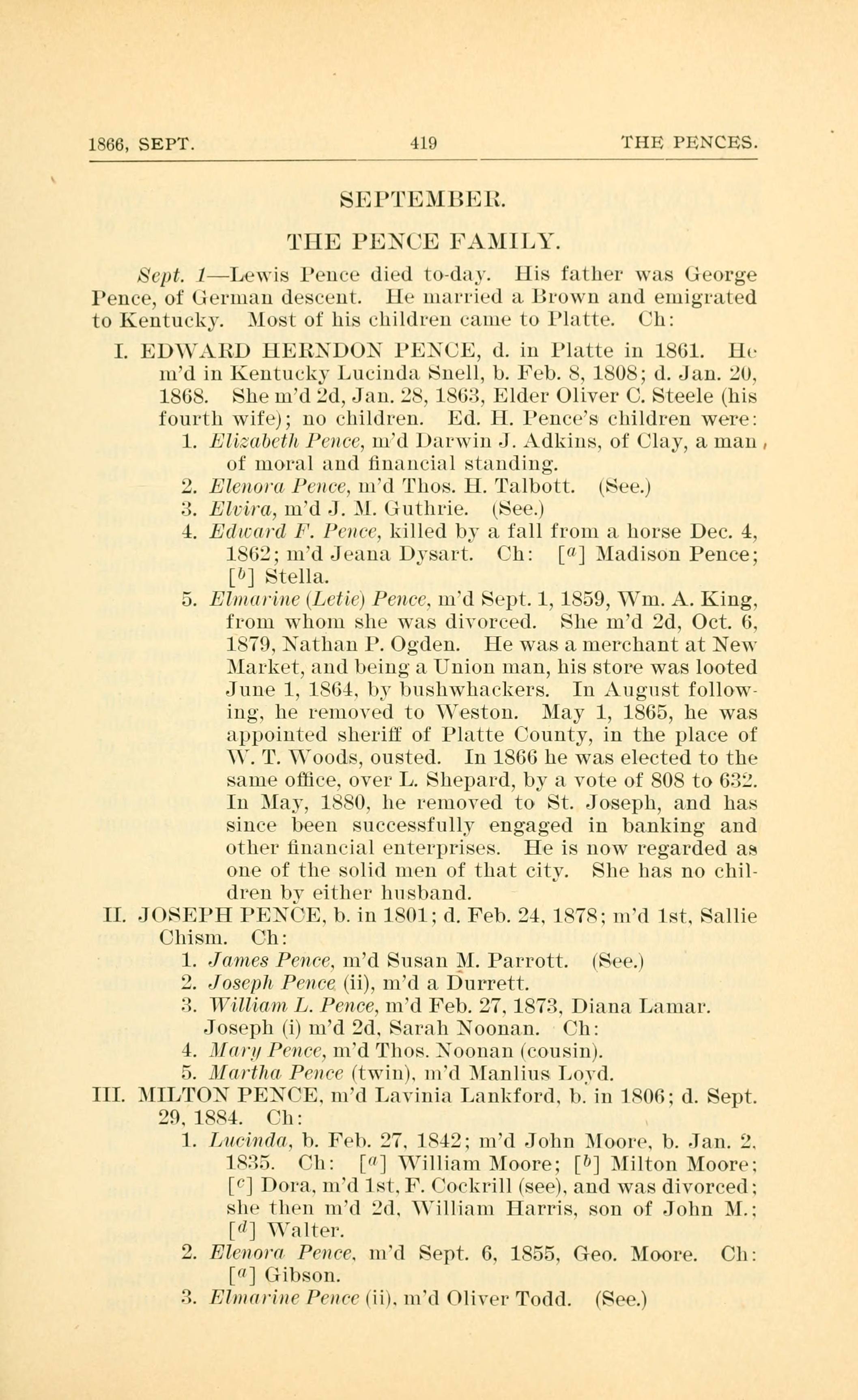 III. MILTON PENCE. 111d Lavinia Lankford. b. i11 1806; (1. Sept.