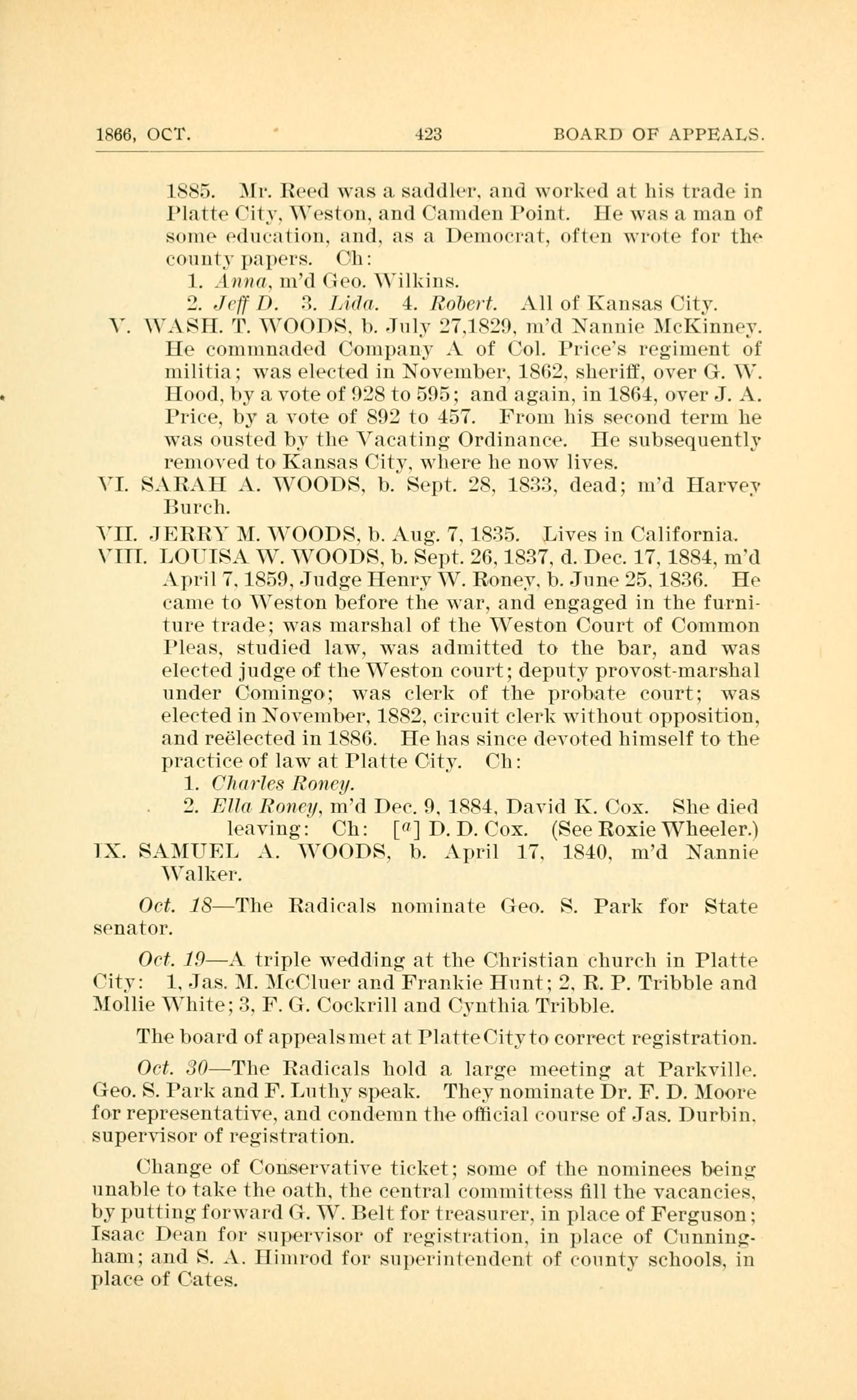 lX. SAMUEL .. WOODS, b. April 17. 1840. md Nannie