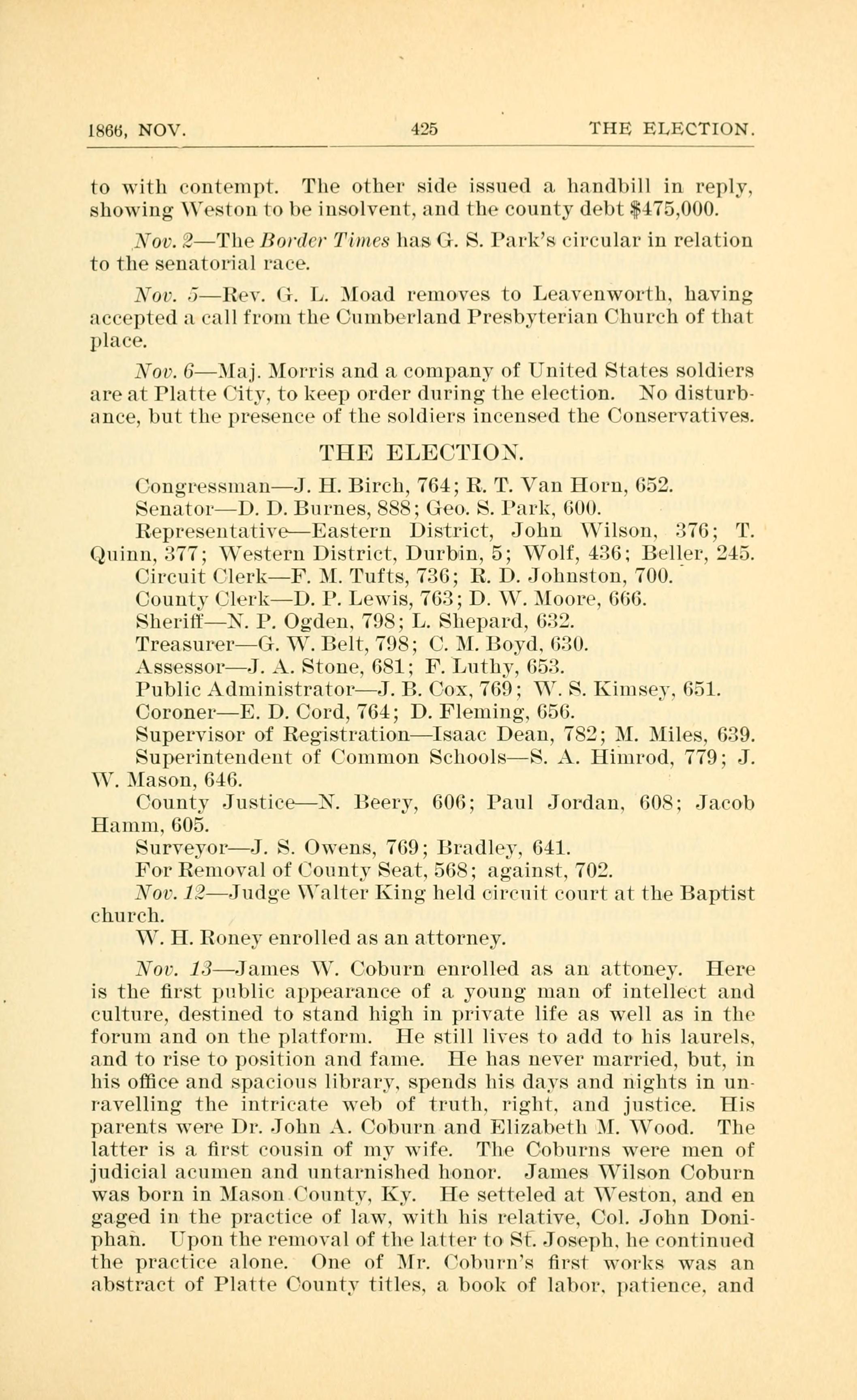 Nov. 1.3-James W. Coburn enrolled as an attoney. Here
