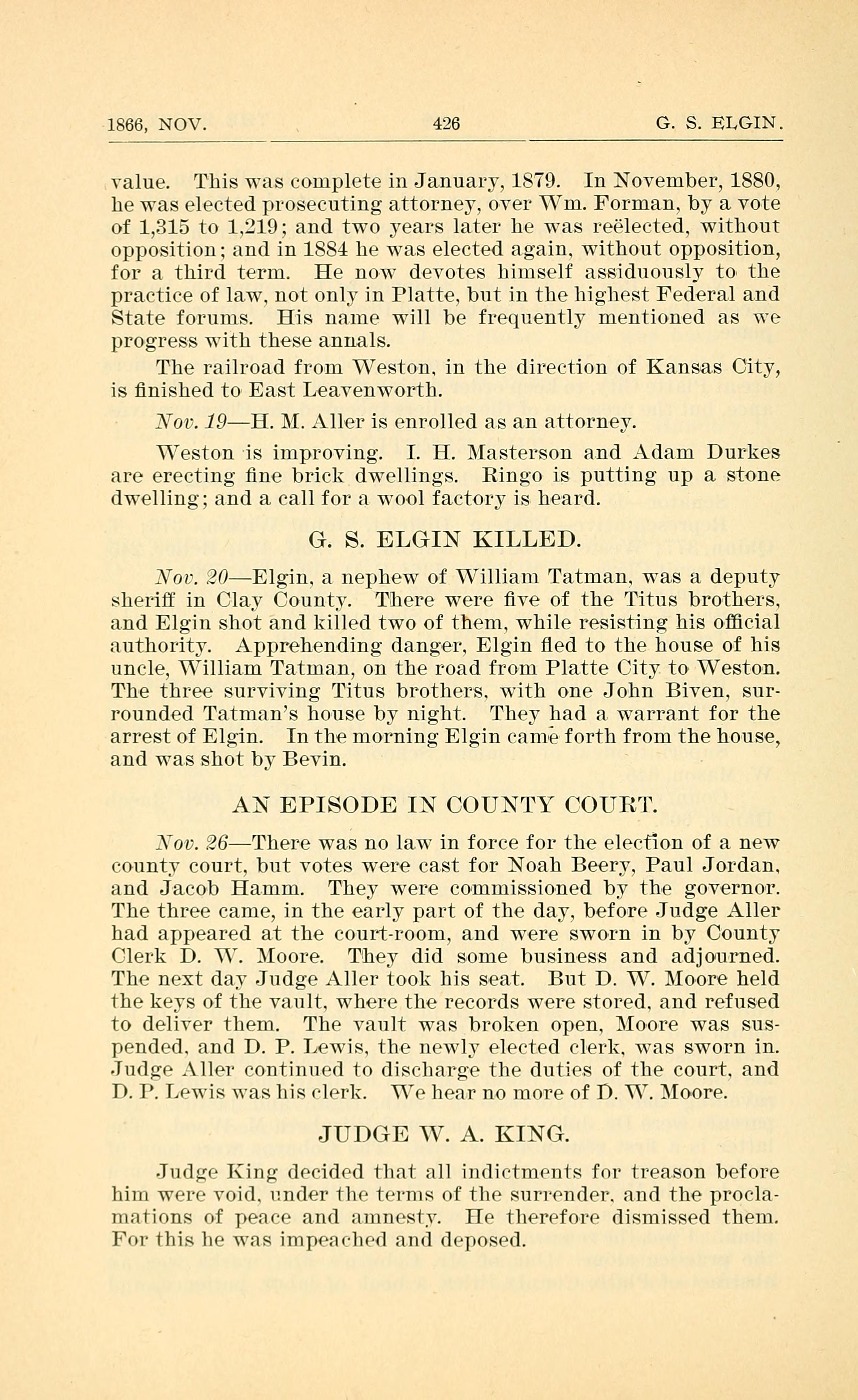 Nor. ;20Elgin. a nephew of William Tatman. was a deputy