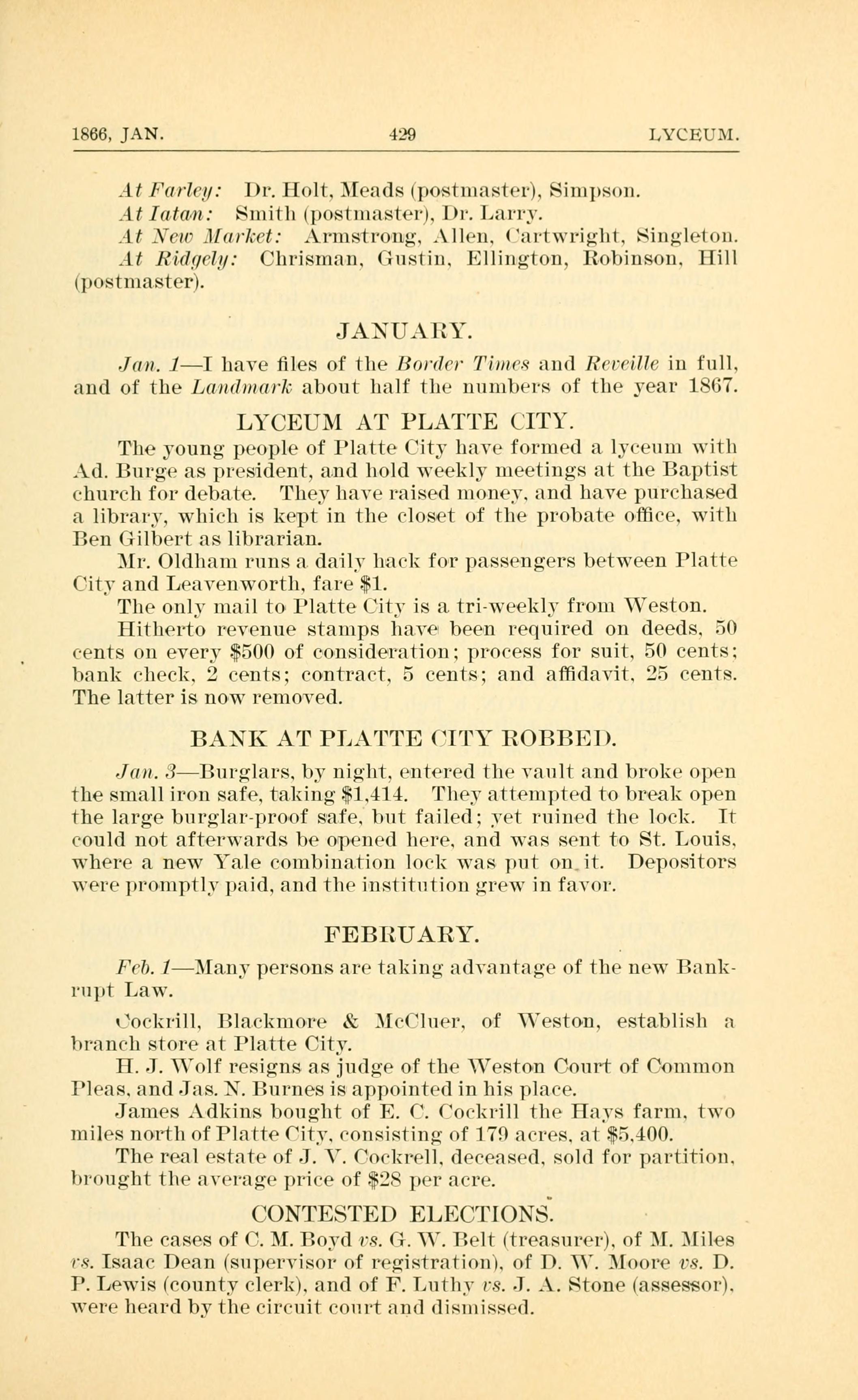 Mr. Oldham r11ns a. daily hark for passengers between Platte