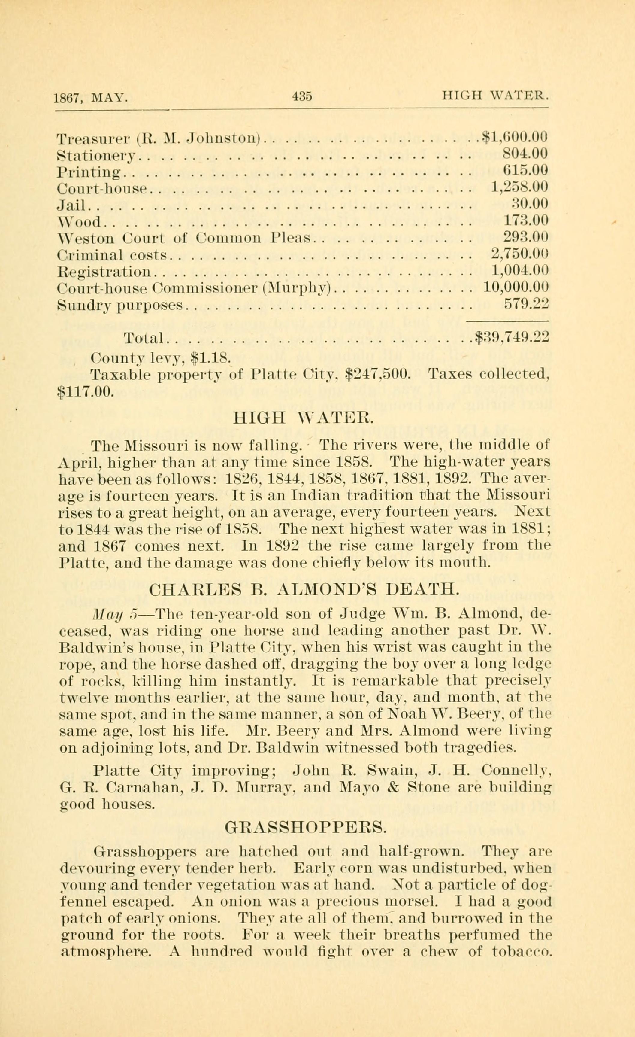 Platte City improving; John R. Swain, J. H. Connelly.
