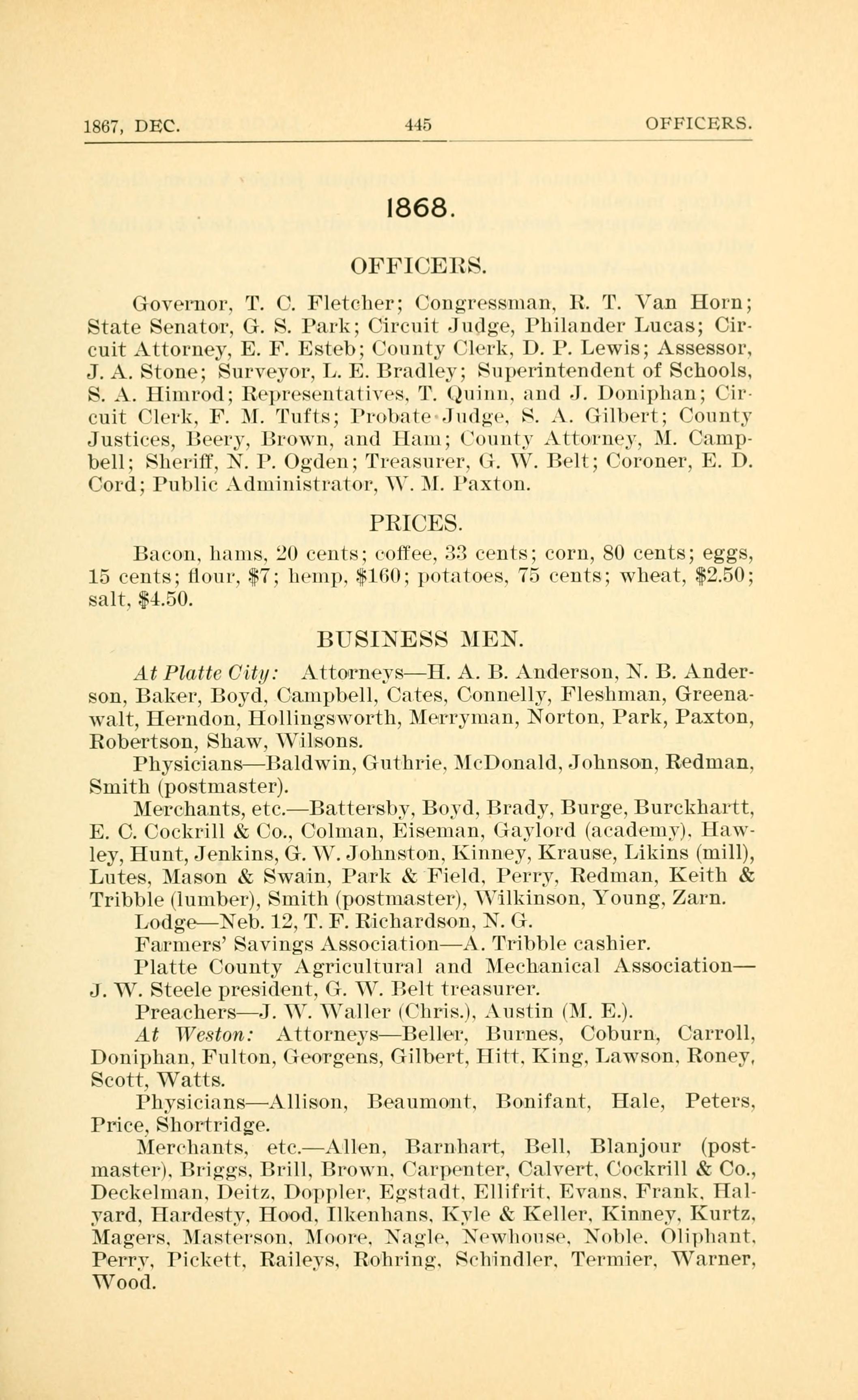 Doniphan. Fulton, Georgens, Gilbert. Hitt. King. Lawson. Roney,