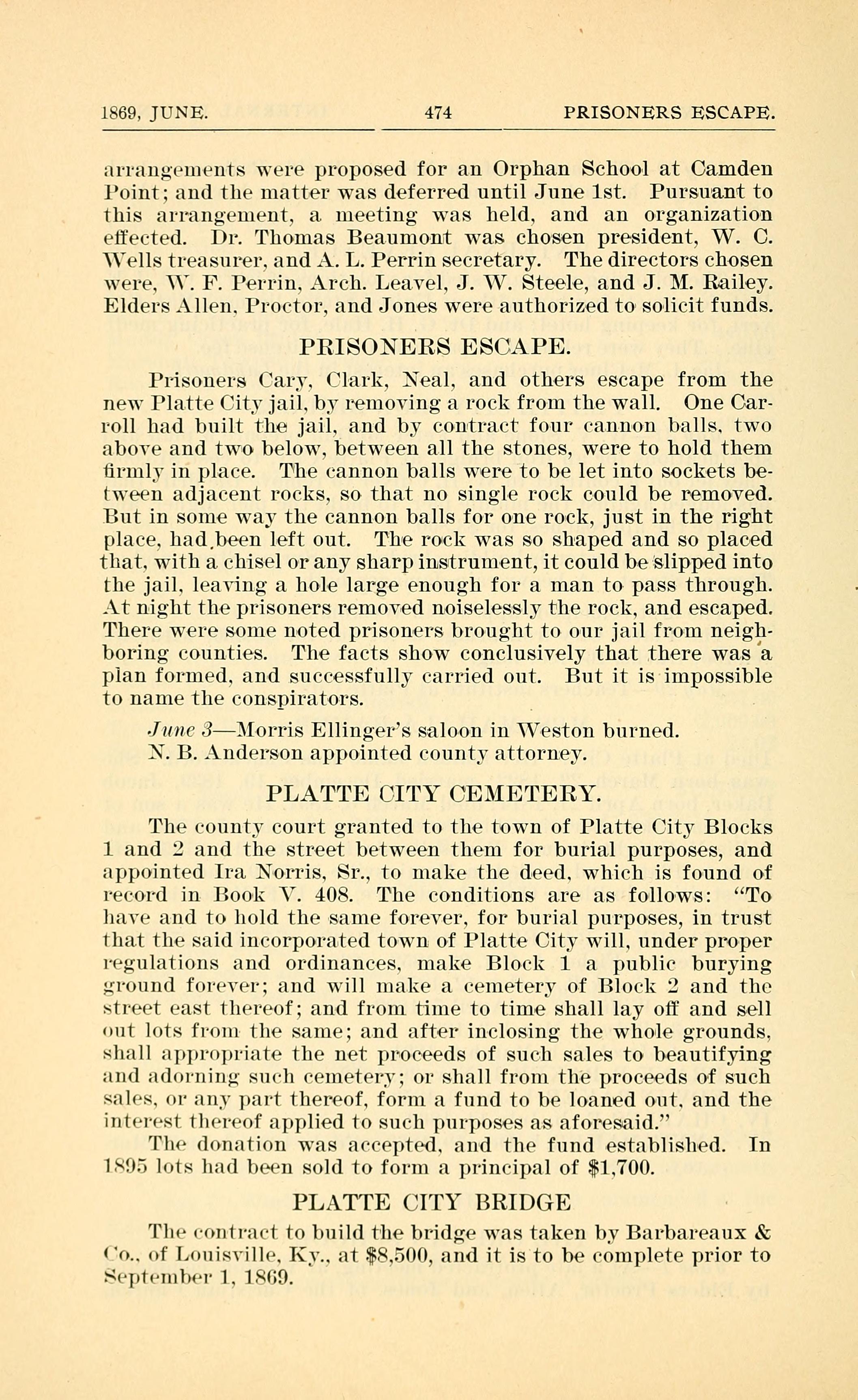 1869, JUNE. 474 PRISONERS ESCAPE.