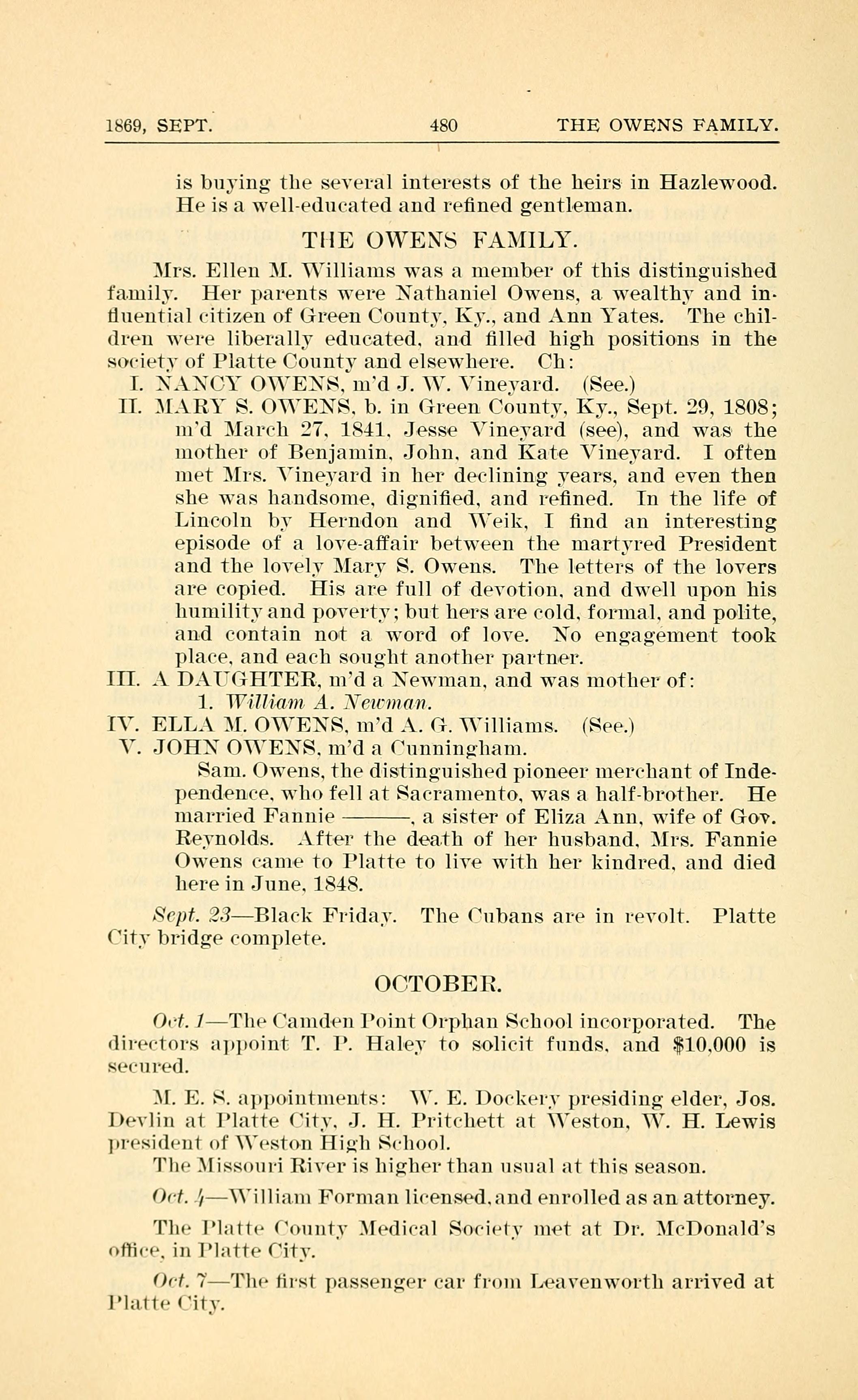 II. MARY S. OWENS. b. i11 Green County. Ky.. Sept. 29. 1808;
