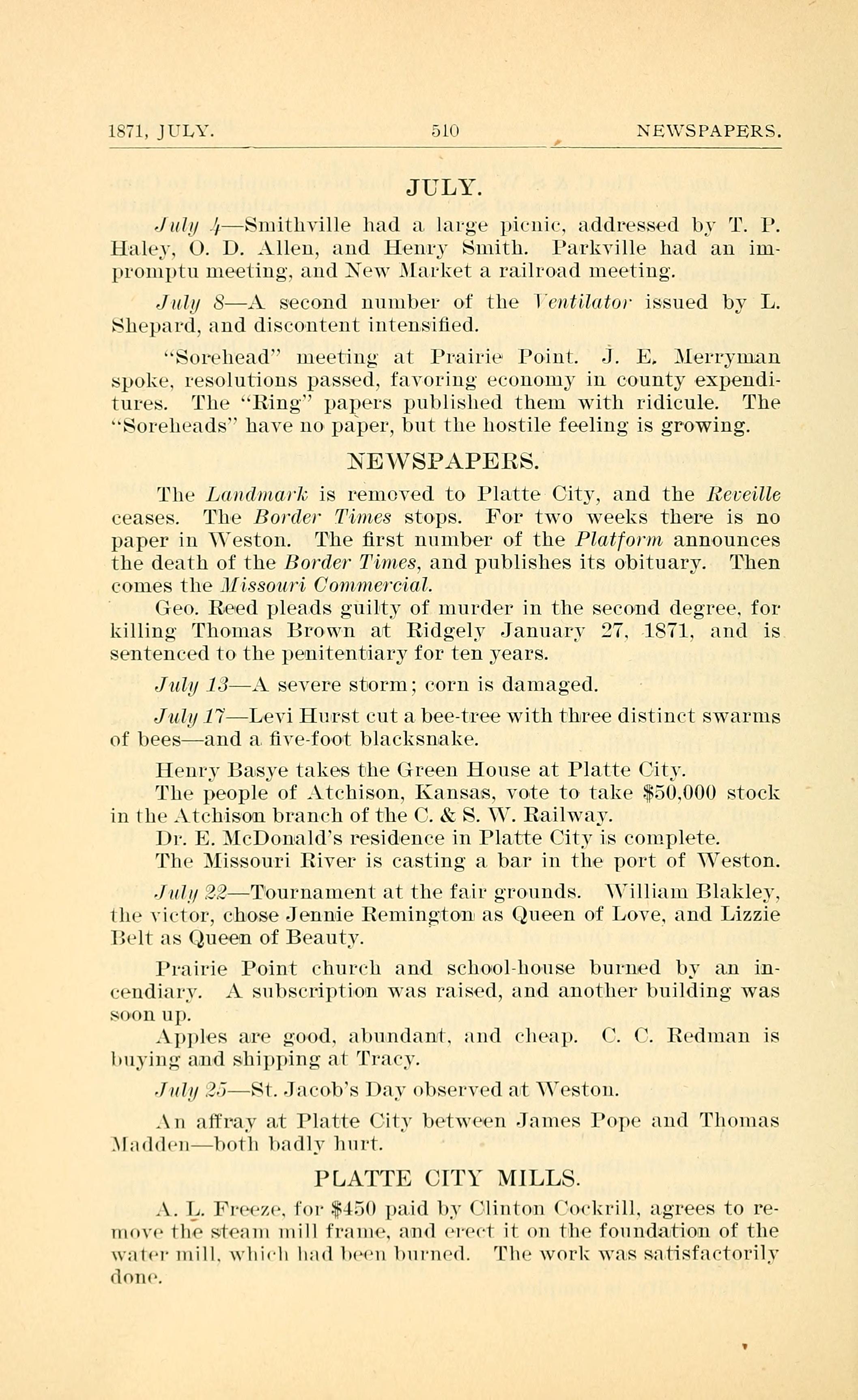 Hale). 0. D. Allen, and Heiiry Smith. Parkville had an im