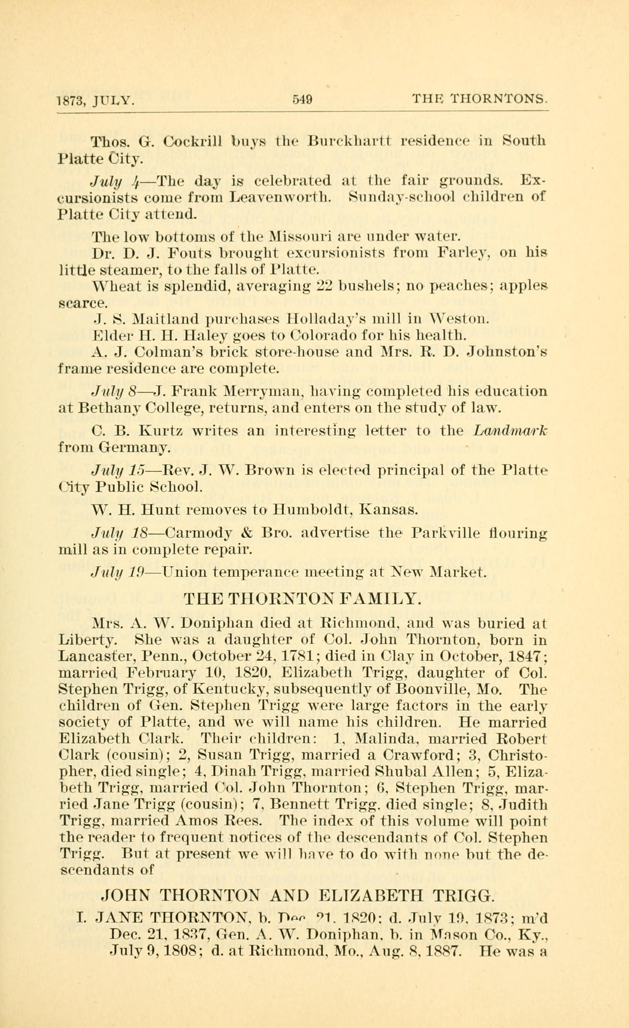Stephen Trigg, of Kentucky, subsequently of Boonville, M0. The