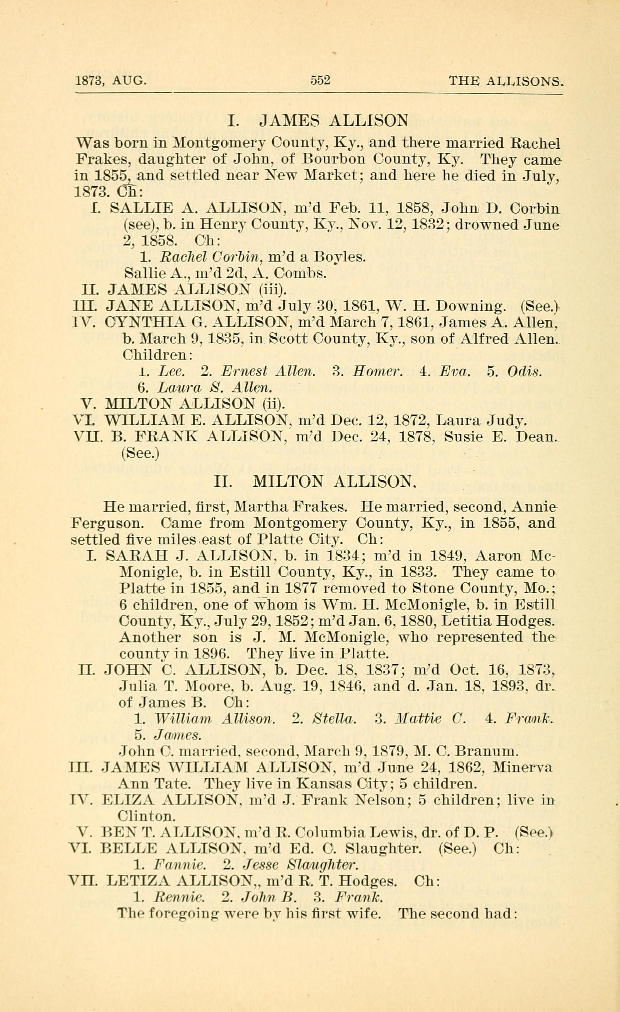 II. JOHN C. ALLISON, b. Dec. 18. 1837; md Oct. 16, 1873,