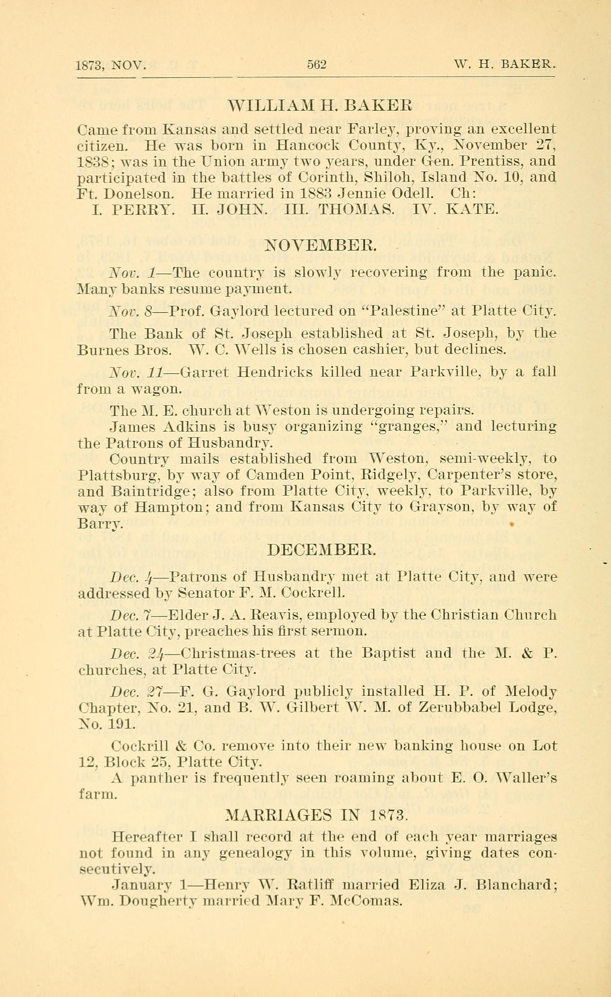 Dec. J;Patrons of Husbandry met at Platte City, and were