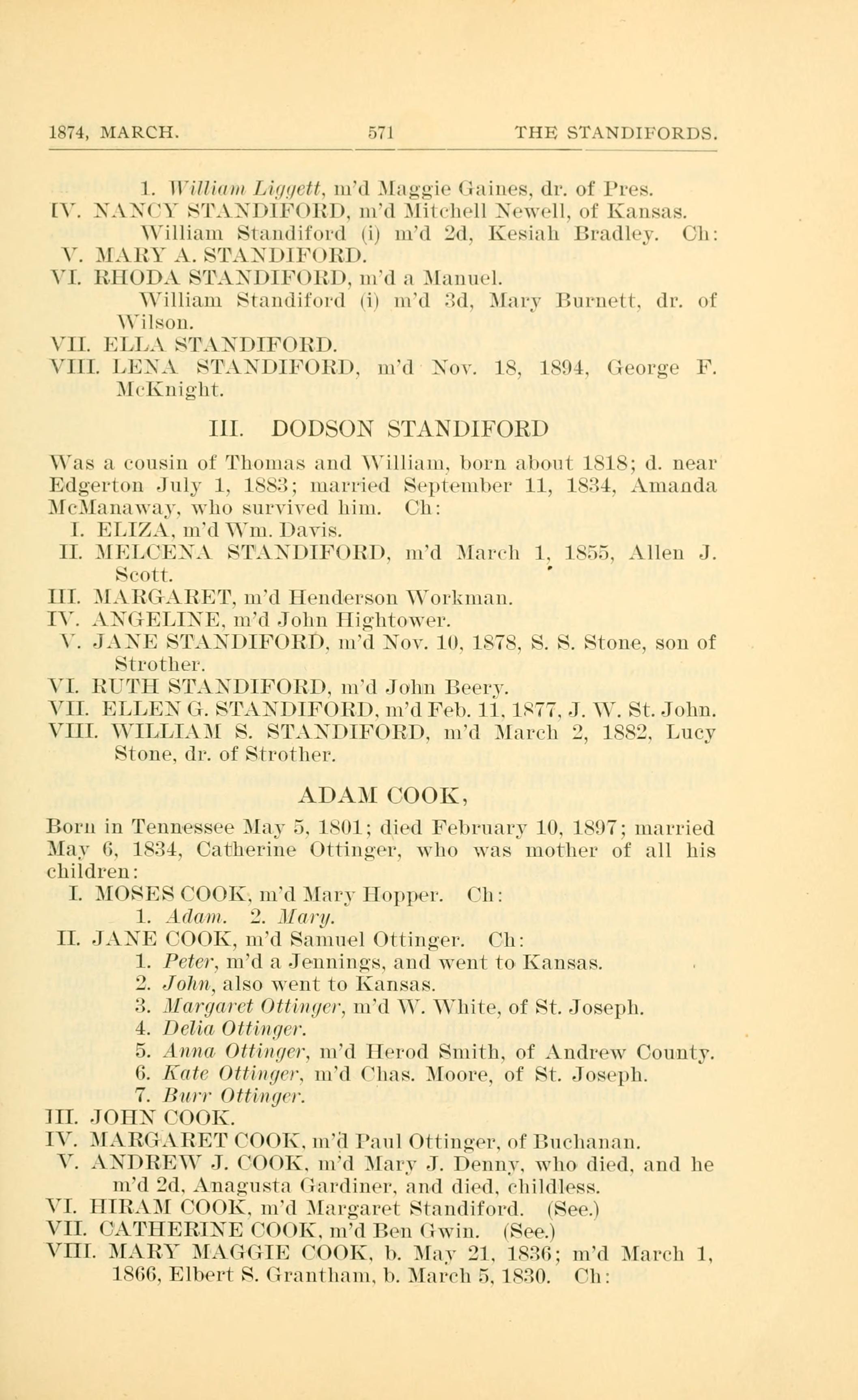 V. ANDREW J. COOK, married Mary J. Denny, who died, and he married second, Anagusta Gardiner, and died, childless.