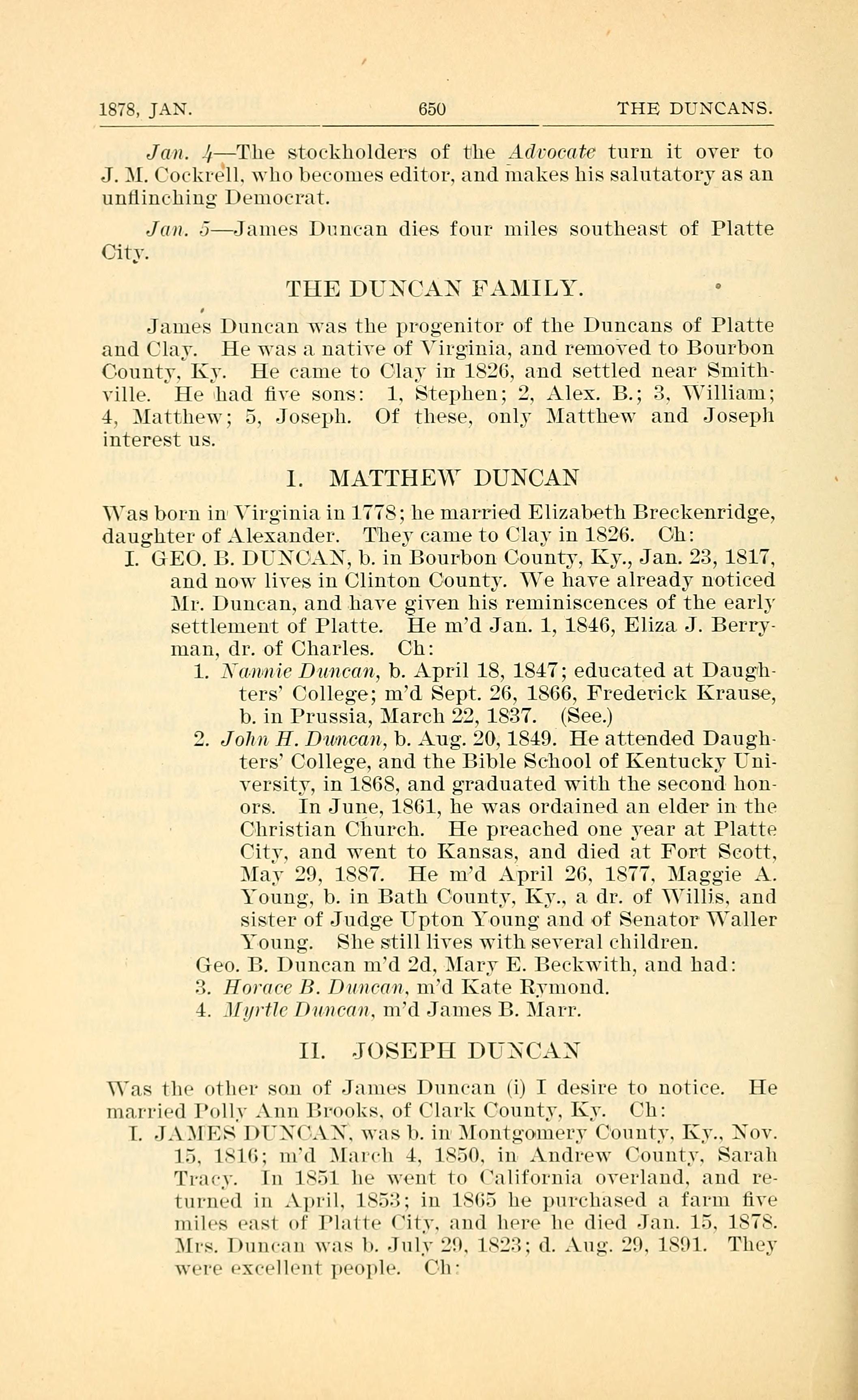 2. John. H. Dmzcan, b. Aug. 20, 1849. He attended Daugh-