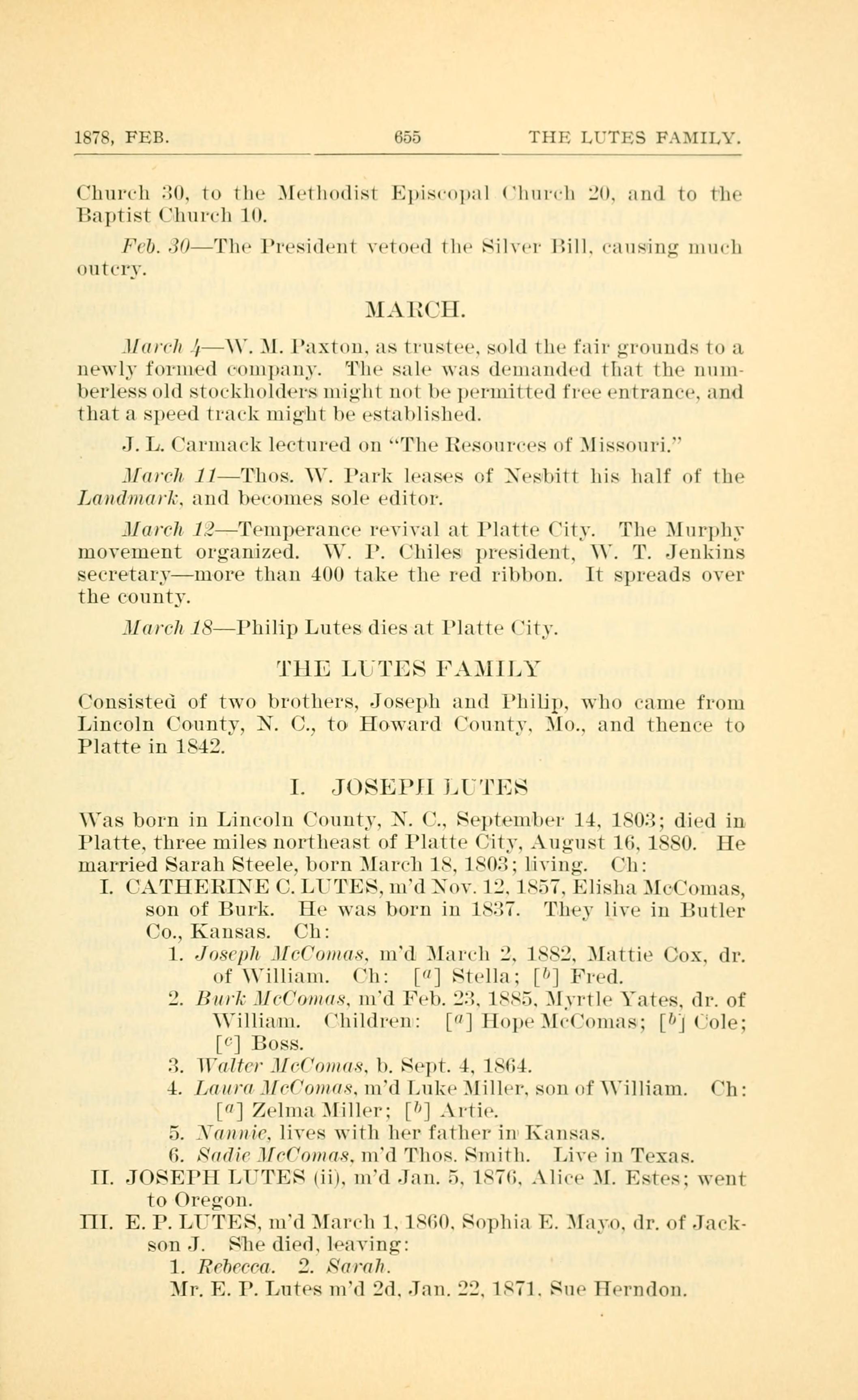 1878, FEB. 655 THE LUTES FAMILY