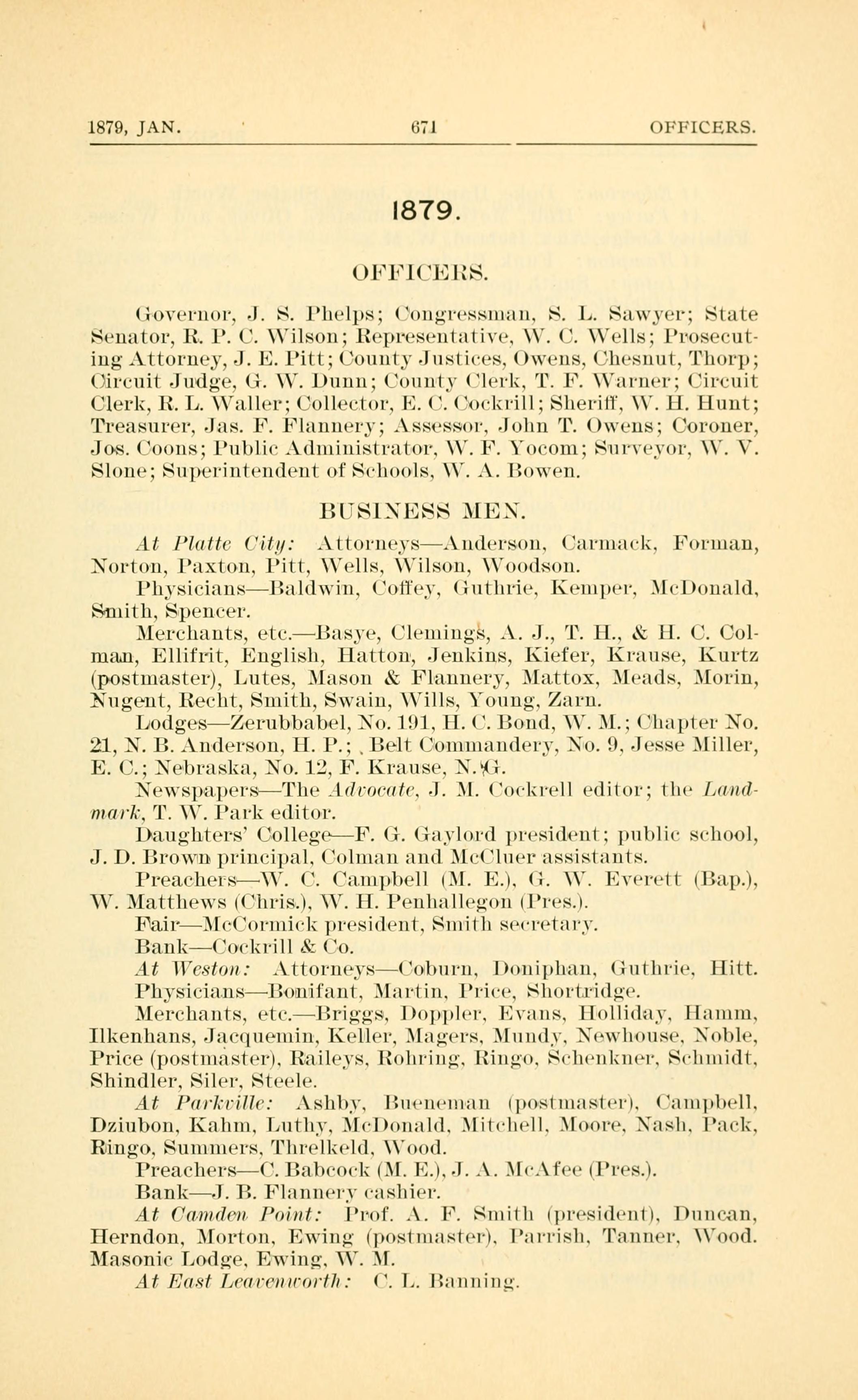 1879, JAN. 671 OFFICERS OFFICERS BUSINESS MEN