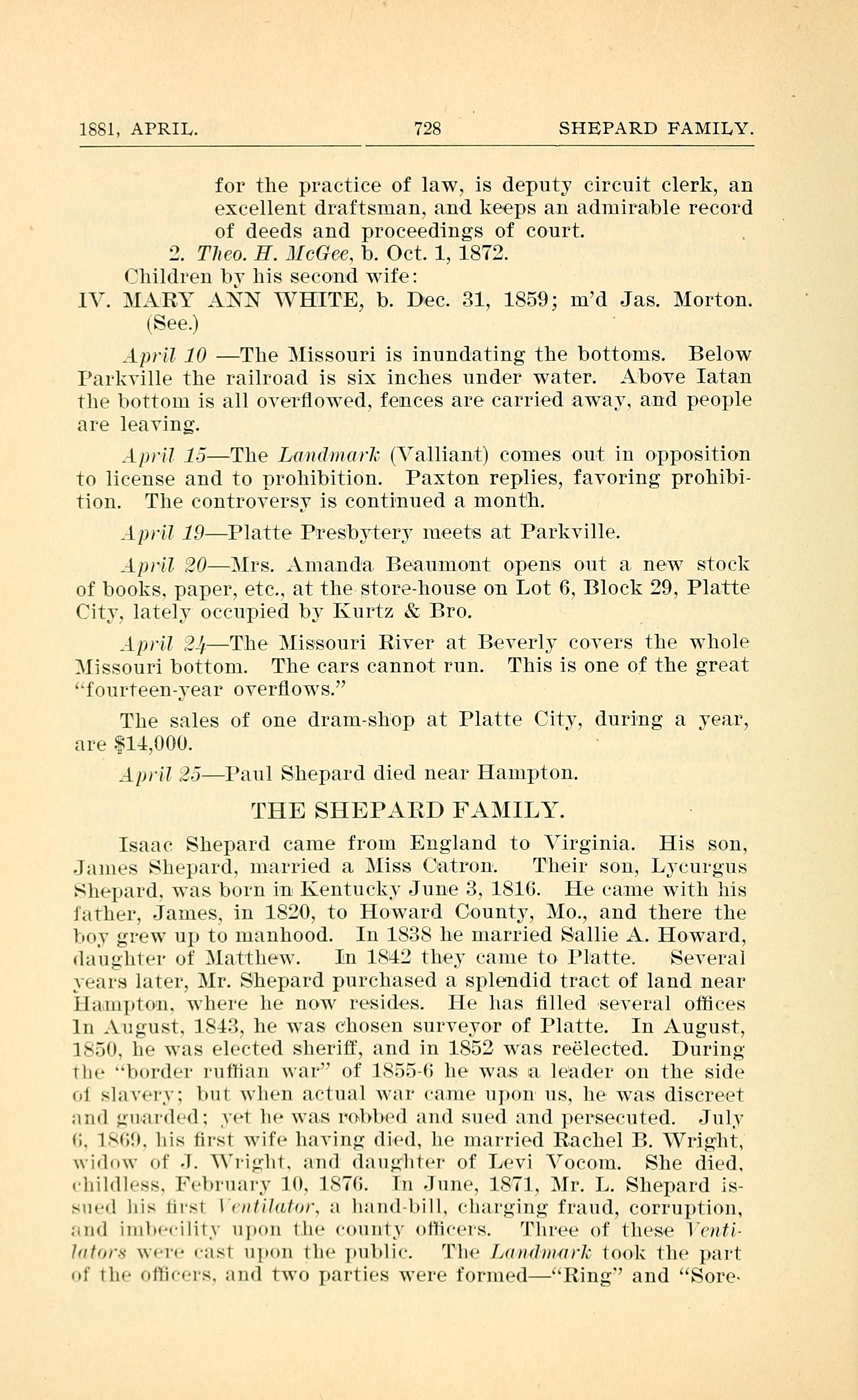 James Shepard. married a Miss Ctatron. Their son, Lycurgus