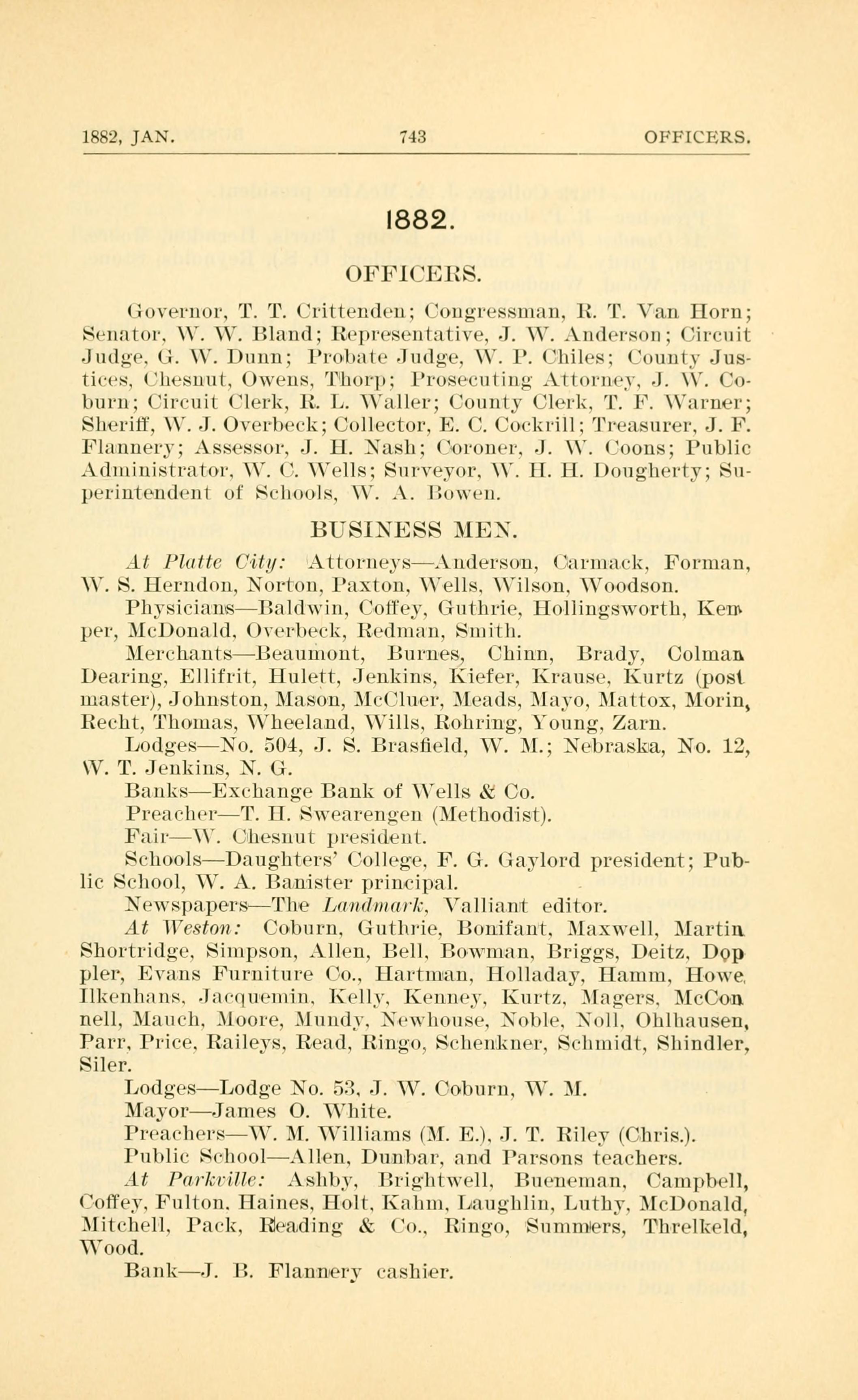 1882, JAN. 743 OFFICERS 1882 OFFICERS BUSINESS MEN