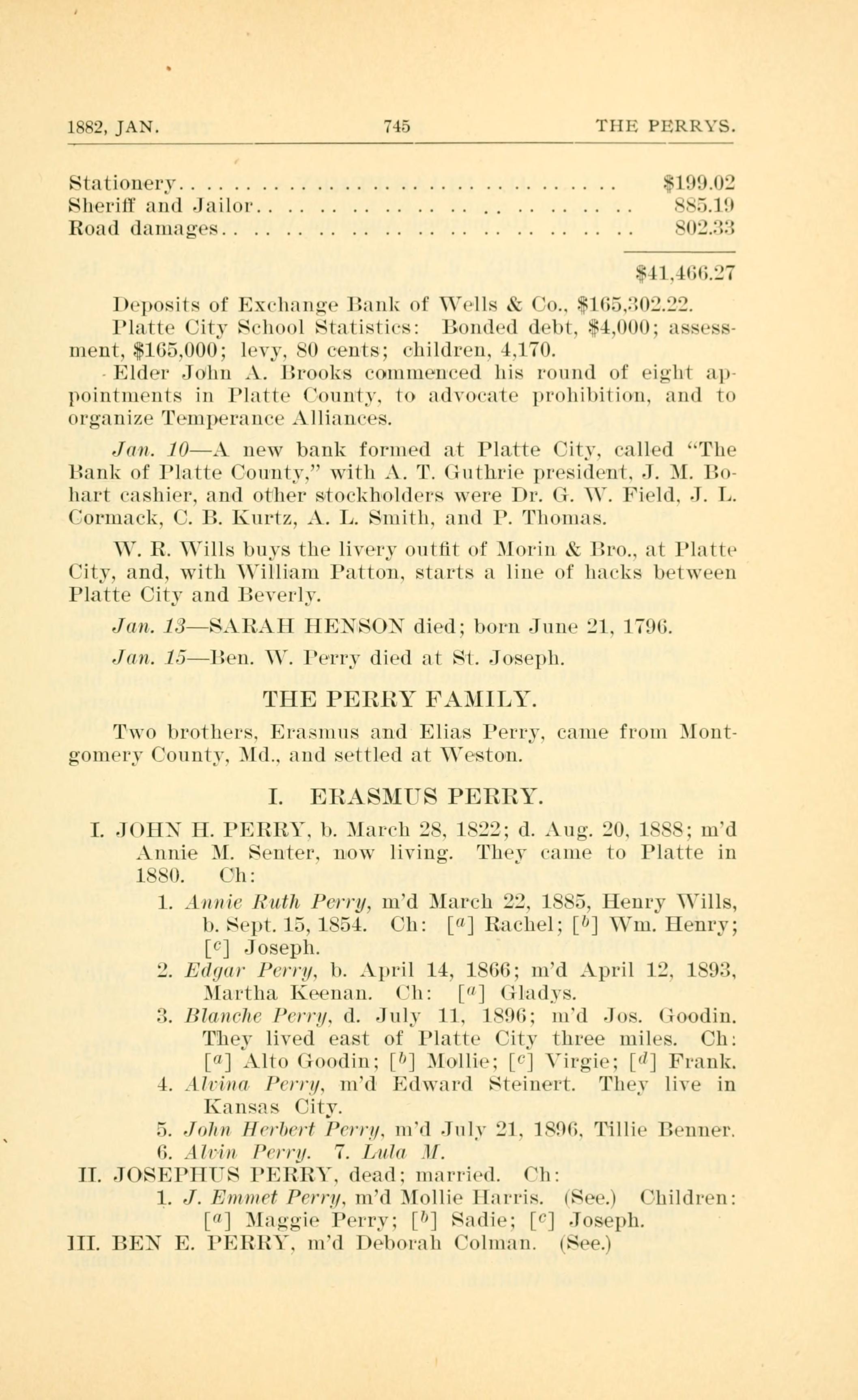 W. R. Wills buys the livery outfit of Morin & Bro., at Platte City, and, with William Patton, starts a line of hacks between Platte City and Beverly.
