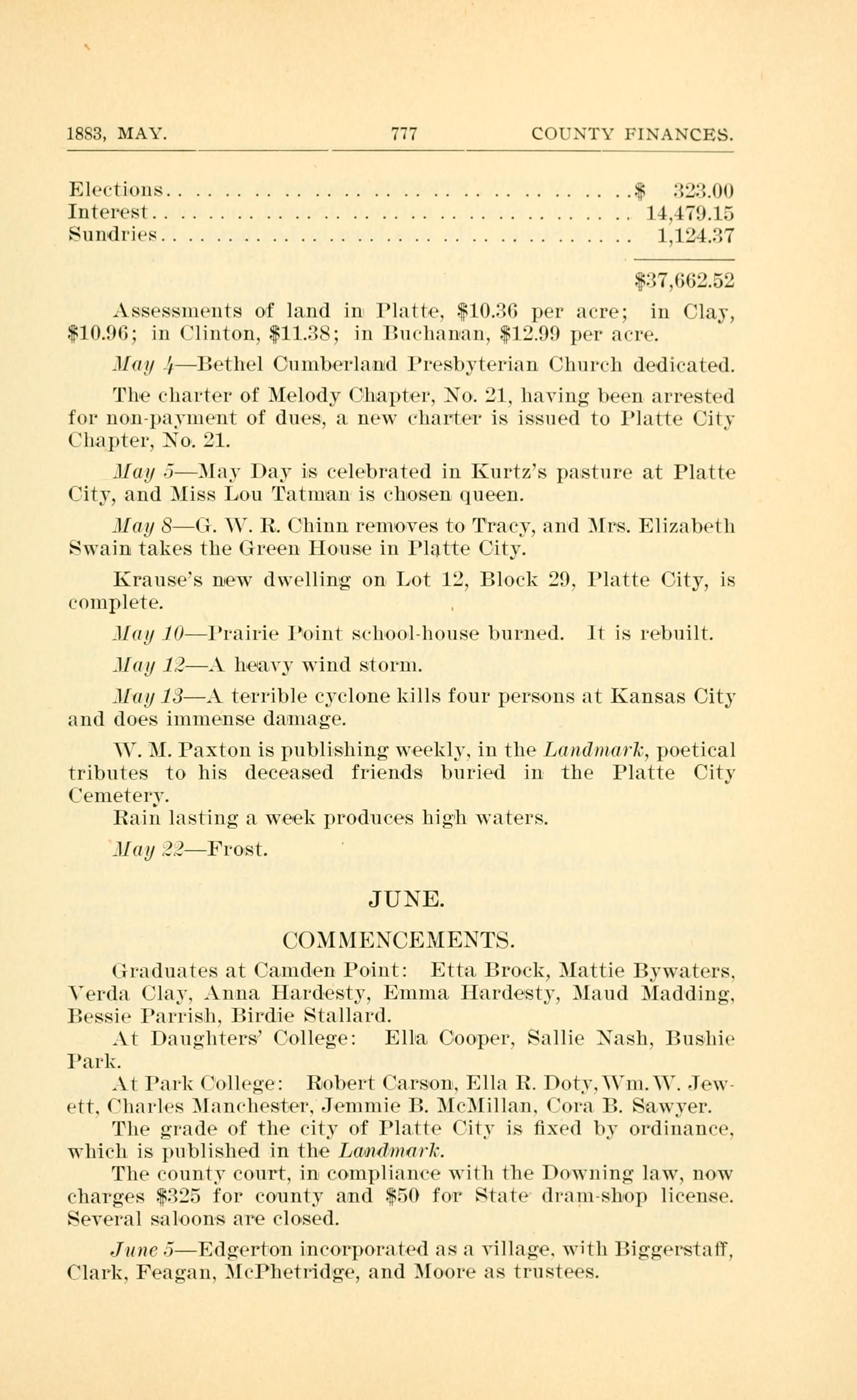 Assessments of land in Platte, $1().:lG per il(1(; in Clay,